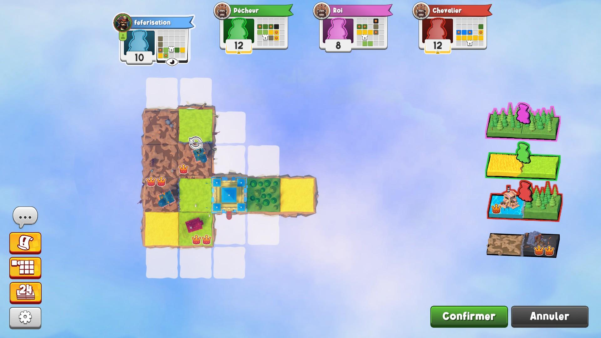 L’adaptation numérique de Kingdomino reste fidèle au jeu original, tout en offrant une expérience plus fluide et rapide. Plus besoin de compter et trier les tuiles ou de gérer le décompte des points manuellement en fin de partie. Tout est maintenant automatisé, rendant chaque partie plus dynamique, mais surtout,