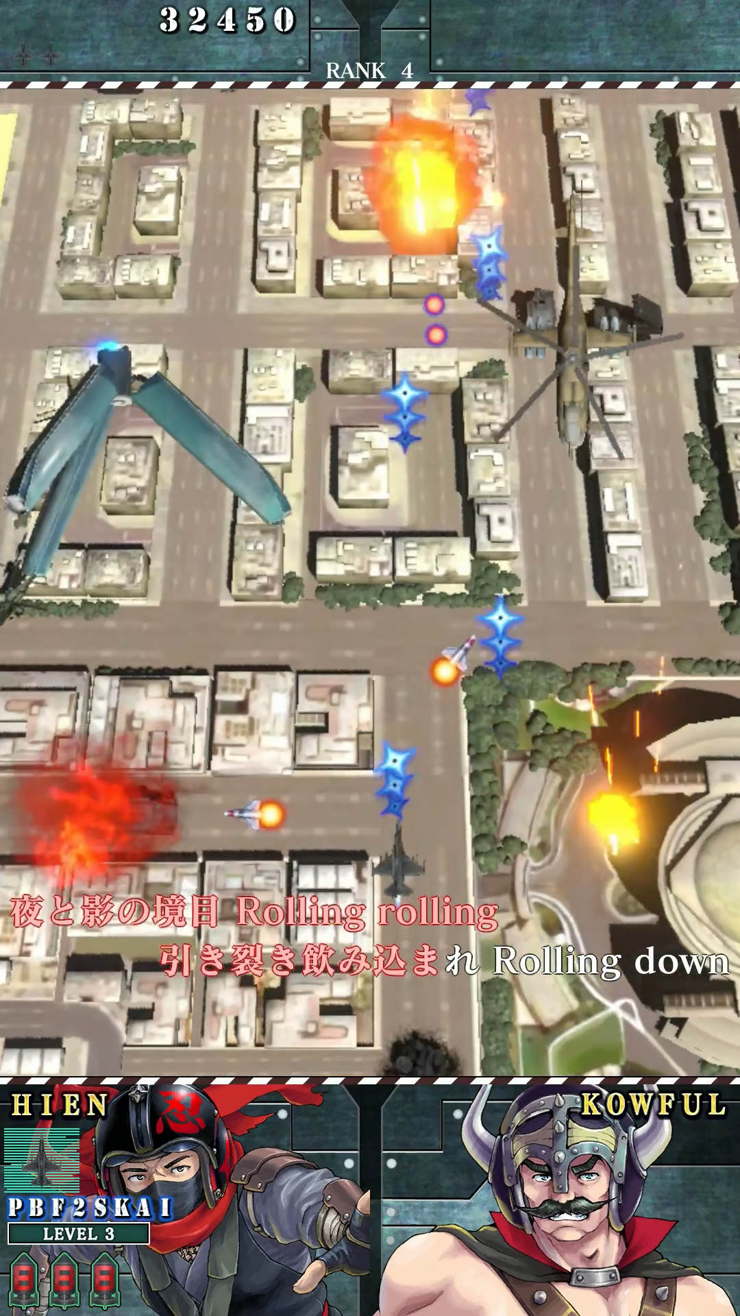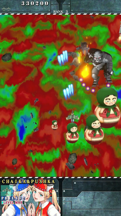 Ayant joué sur Nintendo Switch, les graphismes ne m’ont pas plus choqué que ça. Vous aurez remarqué que mes impressions d’écran sont en format vertical, afin de respecter scrupuleusement le format original du jeu. Bien sûr, d’origine, le jeu démarre en format 16:9 classique, mais Sonic Wings Reunion offre la possibilité de jouer le jeu dans sa forme originale, et je n’ai eu qu’à tourner d’un quart mon moniteur pour profiter à fond du jeu, et je m’exposais alors à deux constatations! La première fut de me dire que c’était bien plus agréable à jouer, même si ça demande un temps d’adaptation, et la seconde, c’est que proche d’un écran de vingt-sept pouces, ça pixelise beaucoup et la résolution de l’image paraît alors très grossière! Il serait sans doute plus avisé de jouer de cette manière avec la Switch dans sa configuration portable, et non pas branchée sur un écran! La résolution est digne de la PlayStation 2, ce qui commence à sérieusement dater. Encore heureux que tout tourne impeccablement bien sans quelconque ralentissement. Et je dois reconnaître que le jeu parvient à remplir l’écran d’ennemis et d’explosion de façon continue et fluide sans broncher, mais, vu la résolution grossière, c’est loin d’être un exploit!