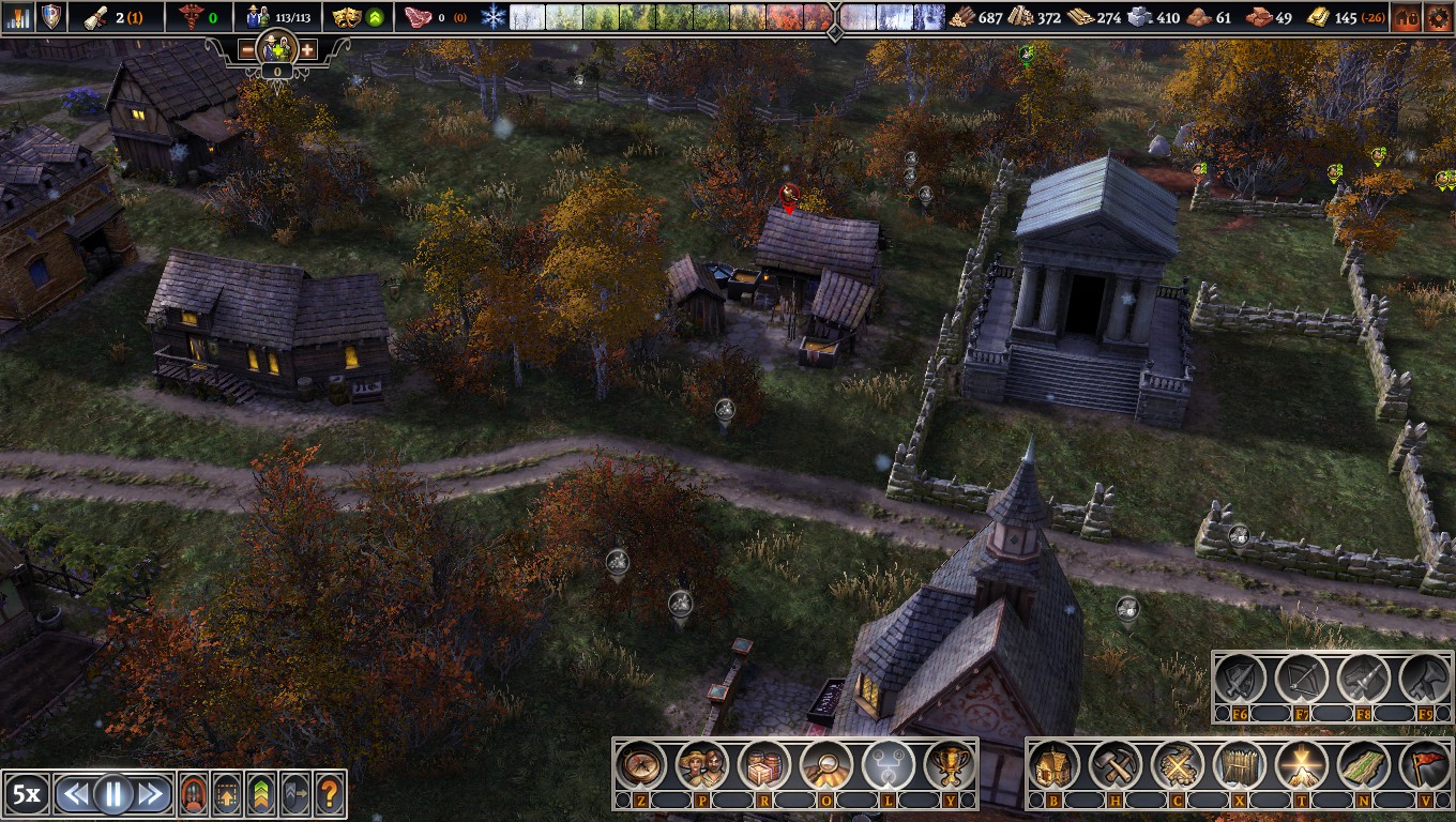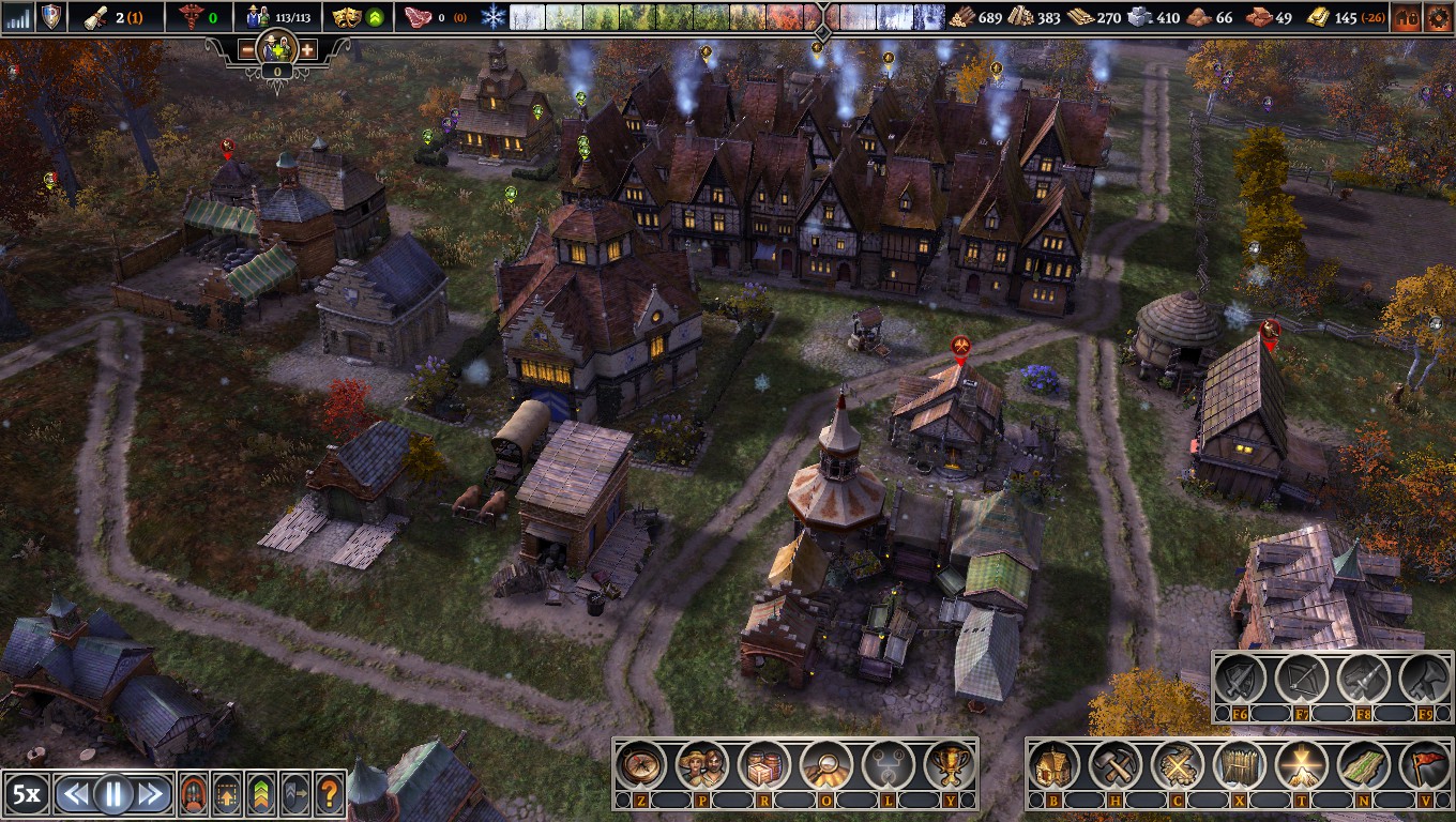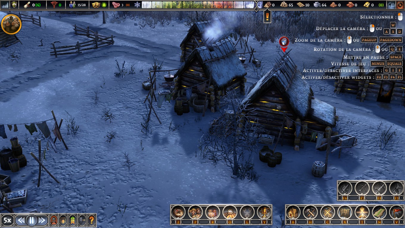 La logistique, enfin, cimente l’ensemble. Des routes bien pensées raccourcissent les cycles de travail et fluidifient les chaînes de transport; la “désidérabilité” des quartiers, grâce aux services et aux aménagements, conditionne la progression par paliers et vous oblige à penser un véritable plan d’urbanisme. En pratique, l’IA des villageois paraît parfois lente à s’activer et priorise des tâches qui ne sont pas les vôtres. Même en classant les commandes, il faut de la patience pour les voir s’exécuter. L’augmentation de la vitesse aide: par défaut, le plafond est x3, mais une option permet d’activer x5 qui est beaucoup plus confortable. Après plusieurs heures, j’aurais clairement apprécié un x10 pour lisser les moments d’attente, surtout lorsque la colonie s’étend.