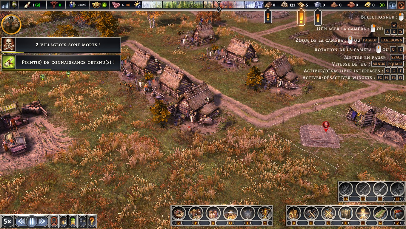 Techniquement, rien d’alarmant sur mes sessions, mais des baisses de régime apparaissent à grande échelle. Sur le plan de l’ergonomie, l’essentiel y est, mais les tutoriels sous forme de pop-ups ne constituent pas un parcours d’apprentissage satisfaisant. Entre une IA de villageois qui tarde parfois à réagir, un cap de vitesse trop timide par défaut et une économie opaque, on passe facilement 3–5 heures à peiner sans réelle sensation de progression. Un mini-mode campagne guidé, assorti d’objectifs graduels et d’un journal “cause → effets”, changerait la donne.