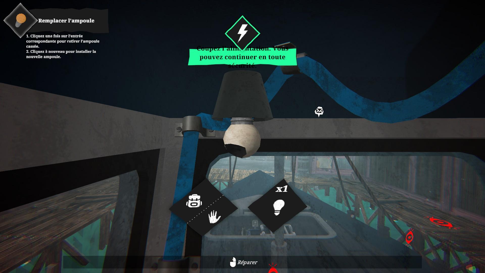 De plus, j’ai rencontré quelques bogues dans les premiers jours du jeu avec l’interaction des outils et également dans la traduction française, mais je ne les ai pas rencontrés lors de ma seconde session de jeu. Il y a encore du travail à faire avec la mise en forme du texte français, mais je suis sûre que ces petits problèmes seront réglés dans la version finale. Il est également très facile de signaler un bogue, car un endroit prévu à cet effet se trouve dans l’écran d’accueil.