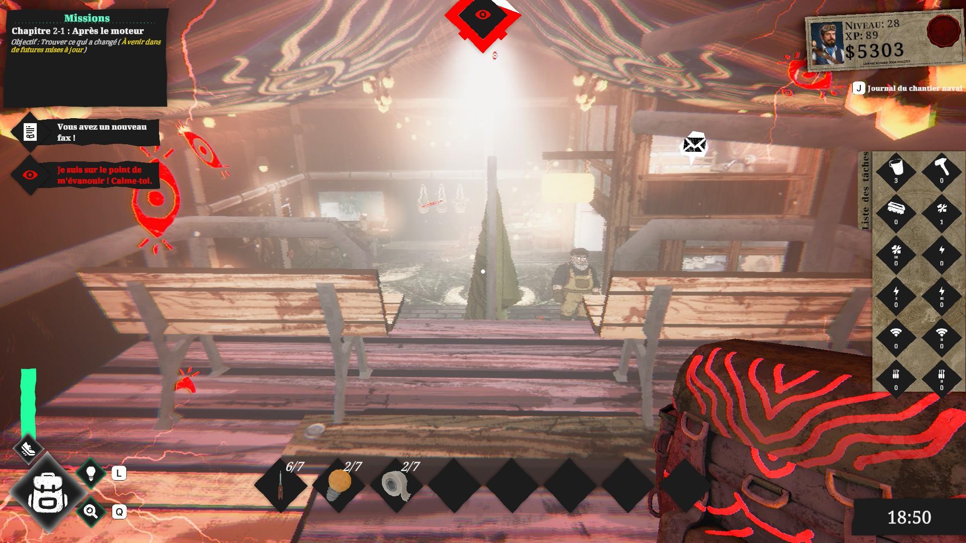Sunken Engine n’est pas très complexe et il est assez cozy, mais il devient rapidement plus lugubre et stressant au fil des jours. Des apparitions aléatoires effrayantes, tant sonores que visuelles, pourront vous donner la chair de poule par moment autant de jour que de nuit. Puisque le jeu s’inspire de l’univers Lovecraftien, vous devrez faire attention pour ne pas sombrer dans la folie. Vous resterez aux aguets du moindre détail étrange la pipe en main, car fumer calmera votre folie dans le jeu.