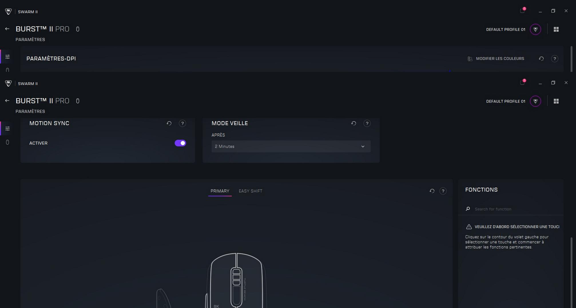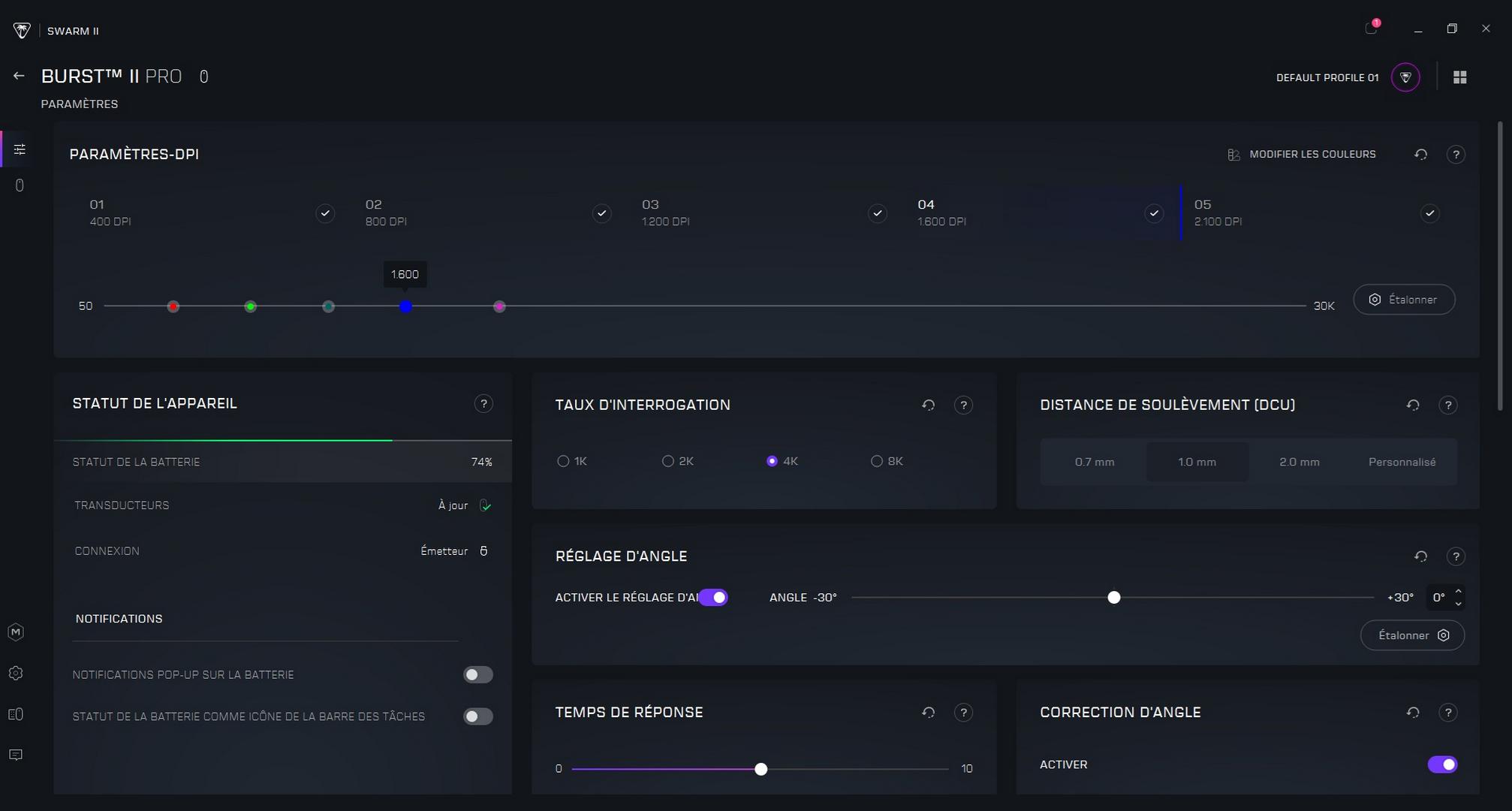 Grâce à l’application Swarm II, de Turtle Beach, il est possible d’ajuster de nombreux paramètres techniques. Lors de la première utilisation, il suffit de brancher la souris à votre ordinateur à l’aide d’un câble pour installer les pilotes et les mises à jour nécessaires. Une fois le tout complété, c’est là que les portes de la personnalisation interne s’ouvrent à nous. Pour les gens qui possèdent déjà des appareils Turtle Beach et qui ont déjà expérimenté Swarm II, vous ne serez aucunement dépaysés par les personnalisations proposées.