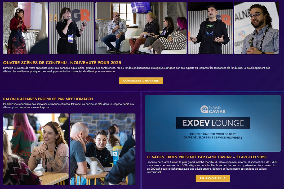 Puisque l’entrepreneuriat repose sur la collaboration, l’ExDev Hub, propulsé par Game Caviar, réunira plus de 1400 fournisseurs de services et des studios souhaitant accroître leur capacité de production et leurs partenariats. De son côté, le Business Lounge, propulsé par MeetToMatch, accueillera 200 acheteurs, ainsi que des éditeurs et partenaires de développement du monde entier, favorisant la croissance et de nouvelles occasions d’affaires.