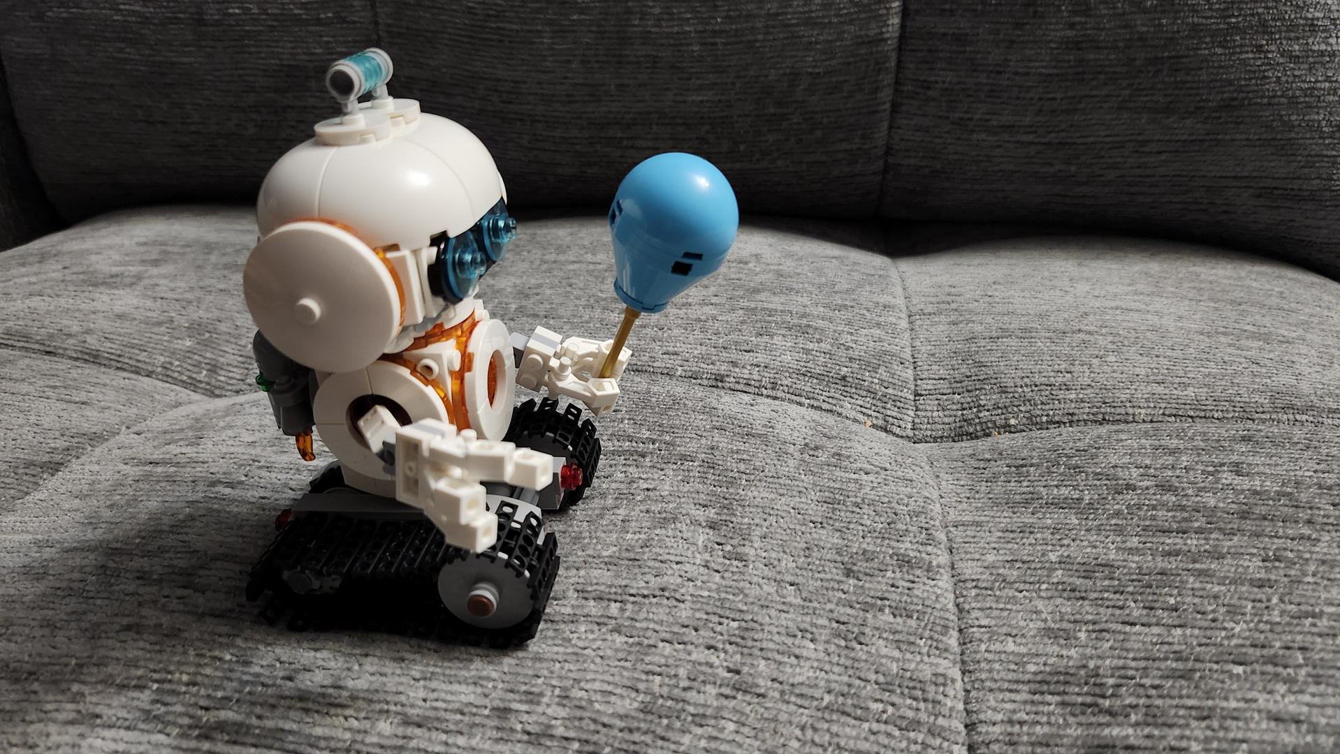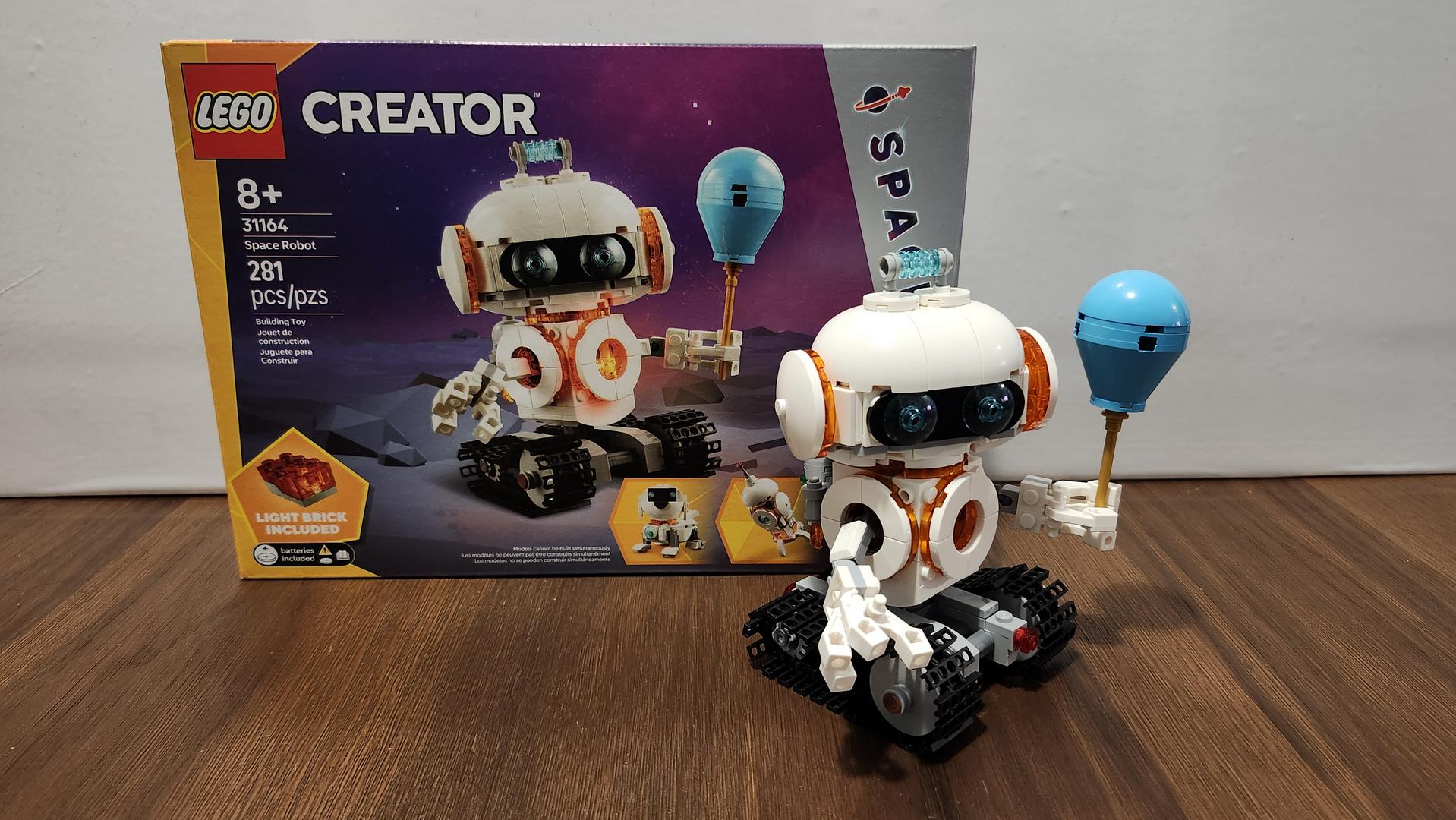 L’ensemble LEGO Creator: Le Robot Spatial est parfait pour les jeunes qui aiment rêver de l’espace et des robots. Ma fille, qui est constamment fascinée par la lune et les étoiles, était la cible parfaite pour cet ensemble. Bien qu’elle trouvait que la construction était plus difficile qu’à l’habitude, elle ne s’est pas découragée et le résultat en a valu la peine chaque fois. Le chien, son premier choix, était bien amusant, mais elle a rapidement voulu construire la fusée. Elle s’est amusée avec celle-ci pendant quelques jours, puis, la veille d’Halloween, nous nous sommes attaqués au robot. Les derniers jours, c’est avec le robot qu’elle s’amuse. Un robot spatial avec un ballon dans les mains est et des chenilles à la place de jambes ou de roues, c’est un vrai coup de génie. C’est l’une des nouvelles obsessions de ma fille; il est totalement adorable. De plus, il roule bien sûr toutes les surfaces et ses doigts s’agrippent bien sur le ballon. Dans l’ensemble, les trois modèles sont vraiment très amusants. Ce sont des constructions complexes pour les jeunes enfants, mais qui apportent leur lot de bonheur.