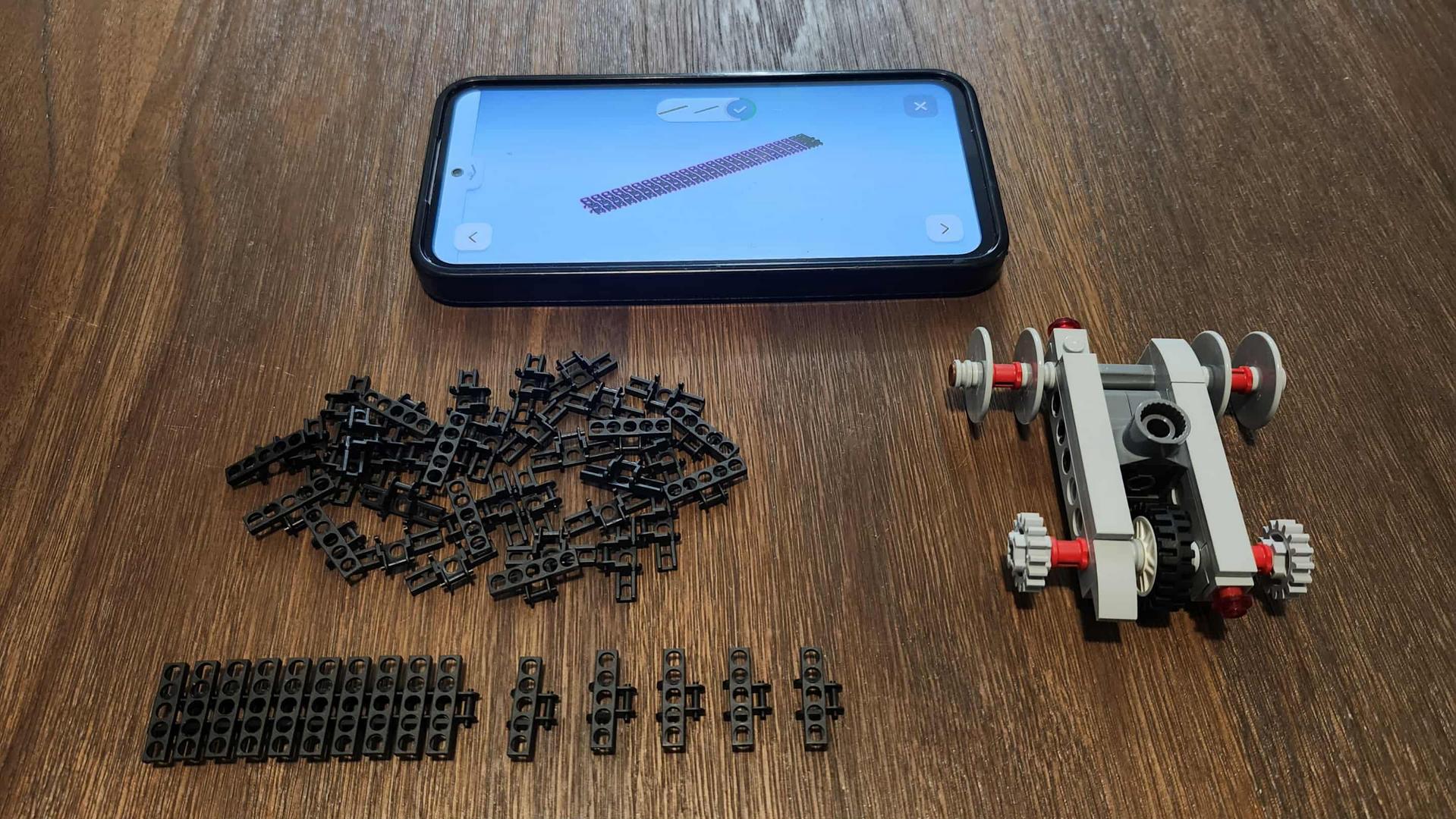 C’est l’ensemble avec lequel je croyais que ma fille aurait moins de facilité. Cependant, bien qu’elle ne soit qu’à la veille de ses cinq ans, j’ai décidé d’utiliser l’application LEGO Builder pour rendre la construction plus interactive (elle peut être téléchargée en numérisant le code QR qui se trouve dans le livret d’instruction). J’étais familier avec cette application, mais, préférant le papier, je ne l’avais pas utilisé depuis un bon moment. Utiliser l’application LEGO Builder fut une excellente décision, puisque ma fille a adoré! Elle a aussi eu plus de facilité qu’avec les livrets, puisqu’elle était capable de faire pivoter le modèle affiché à l’écran pour afin de bien comprendre où placer la pièce. La construction s’est donc très bien déroulée, mais, comme je l’aurais cru, les chenilles ont été les parties les plus complexes à construire.