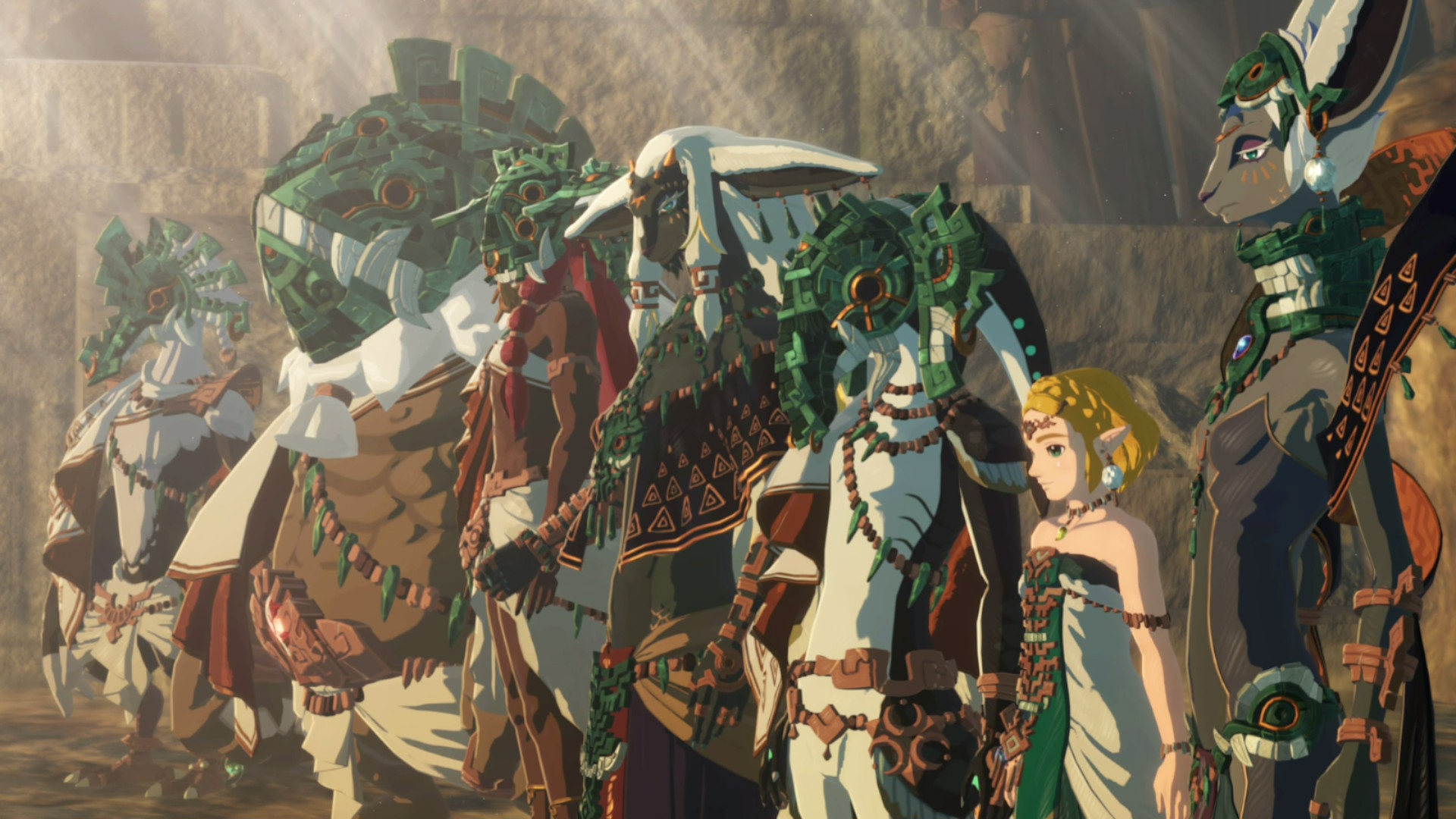 Au début de l’aventure, Zelda est transportée dans le passé au moment de la création d’Hyrule. Elle est secourue par ses ancêtres, le roi Rauru et la reine Sonia, lors de l’une de leurs nombreuses expéditions en tant que souverains et protecteurs du royaume. Après une courte discussion, ils la conduisent au château où elle fait la connaissance d’autres personnages importants, comme Mineru, la sœur du roi, et Lenalia qui deviendra sa servante et confidente.