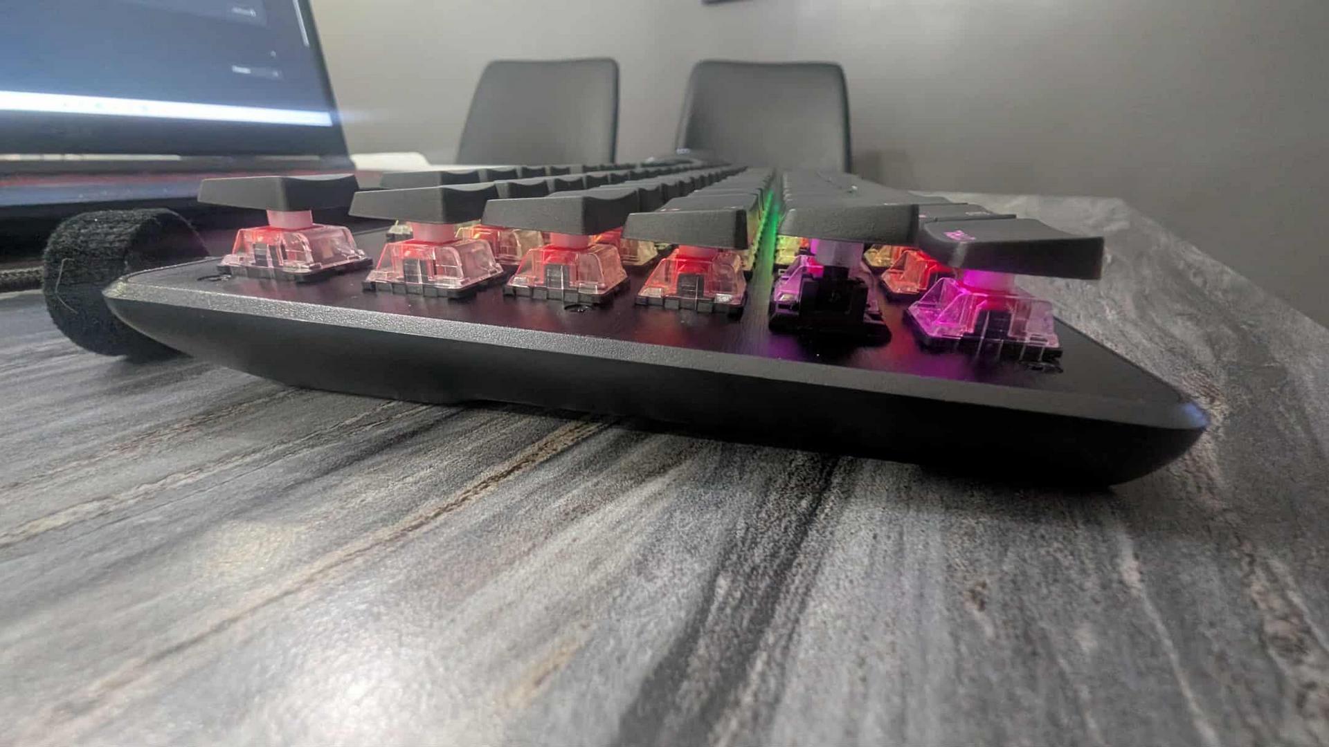 Concernant le bruit, le Vulcan II TKL propose un juste milieu idéal entre silence et cliquetis mécanique que l’on retrouve sur la majorité des claviers mécaniques sur le marché. Il produit un léger son de cliquetis à chaque pression de touches, mais rien de bruyant, ce qui est parfait pour ceux qui aiment sentir la mécanique des touches sans produire un vacarme.