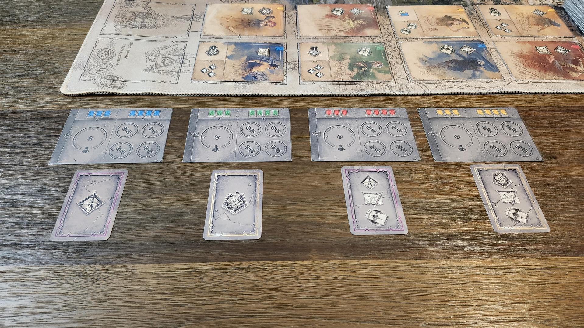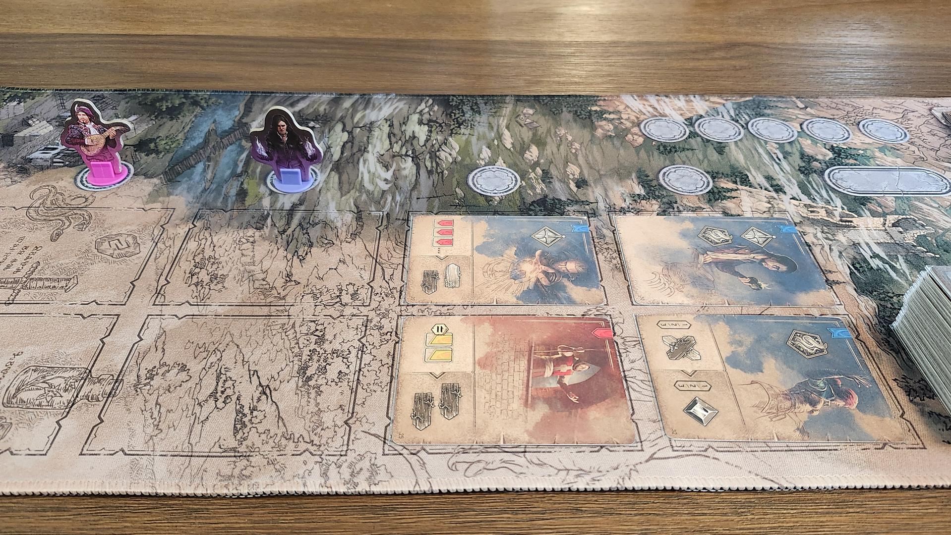 À votre tour, vous devrez piger une paire de cartes parmi les cartes disponibles pour les ajouter à vos cinq cartes de départ. Lors du premier tour, l’ordre est déterminé par le scénario et, par la suite, celui dont le pion est le plus haut dans la ligne choisit ses cartes le premier. Si vous choisissez les dernières cartes, vous obtiendrez un point d’expérience en bonus, mais vous choisirez vos cartes le dernier au prochain tour. Si vous décidez plutôt de piger des cartes au hasard dans le paquet, vous n’aurez pas la chance de choisir des cartes spécifiques, mais vous choisirez en premier au prochain tour. En gros, c’est ce qu’on appelle le drafting.