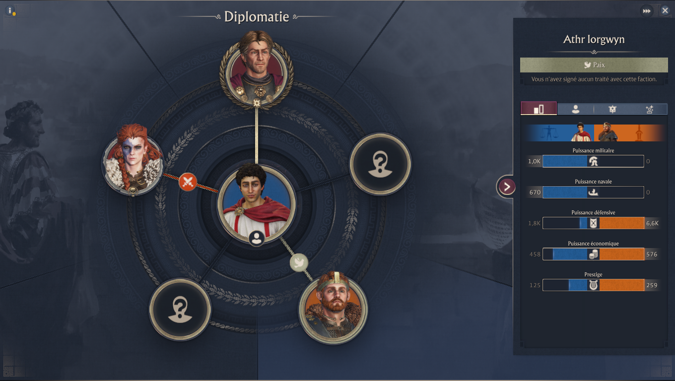 Moins exploré dans ce cadre, le jeu offre également, dans son mode infini, un mode multijoueur où quatre dirigeants s’affronteront ou s’entraideront sur la même carte. Globalement, c’est le même principe, mais avec une possibilité de conclure ses accords avec un autre joueur plutôt que l’ordinateur. Le concept reste intéressant pour jouer ensemble en discutant.