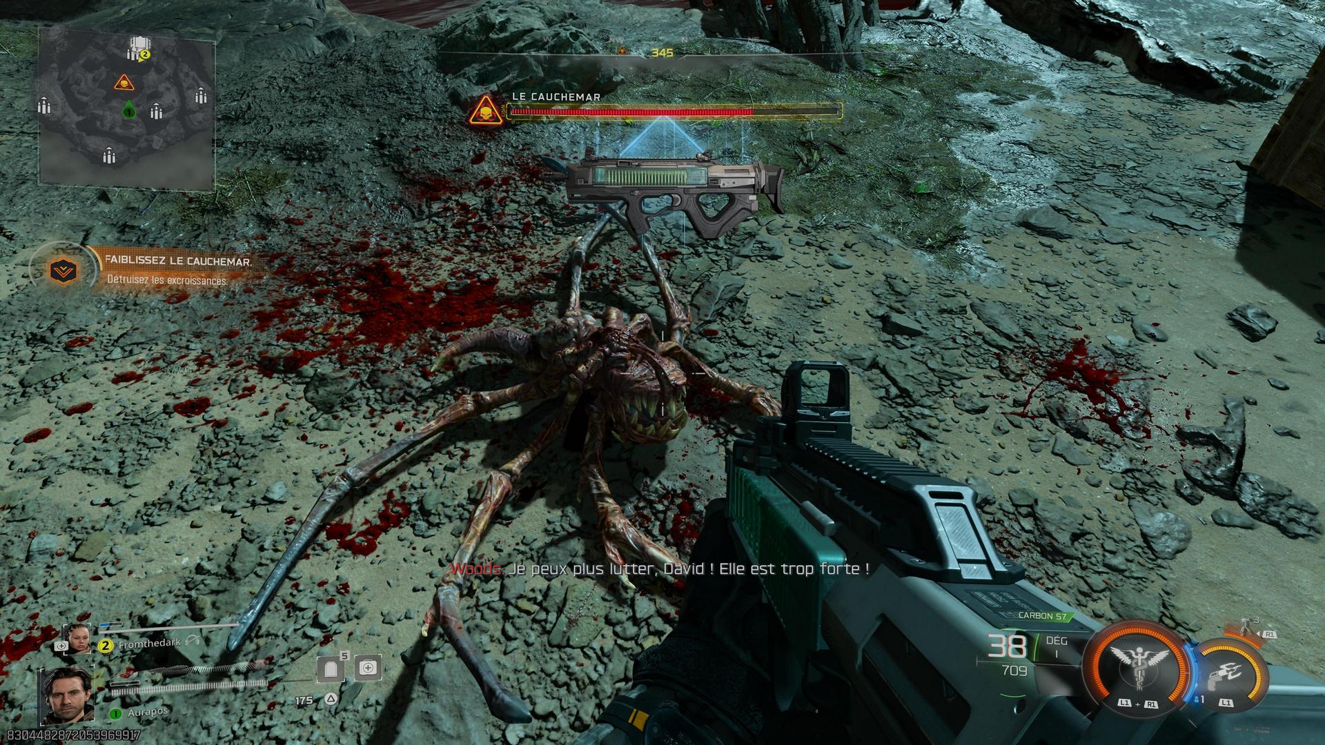 Attendez-vous à de l’action en continu, de la trahison et, étrangement, à une touche de surnaturel. Je ne m’attendais pas à trouver cet élément dans une campagne de Call of Duty. Je ne désire pas trop en dévoiler pour ceux qui voudront tout découvrir par eux-mêmes, mais des combats de boss à la Serious Sam et des créatures tout droit sorties de Doom ne faisaient pas partie de mes attentes pour cette campagne. Est-ce que c’est totalement justifiable dans l’histoire? J’en doute. Est-ce que celle-ci a du sens et est intéressante? Je ne crois pas. Est-ce que c’est tout de même amusant? Certainement! Je crois que ce qui est recherché ici est de divertir et au diable le réalisme. On fonce dans le tas et on tire sur tout ce qui bouge. La plupart des missions vous donneront beaucoup de liberté avec des cartes ouvertes et la possibilité de vous déplacer en véhicule. Des « améliorations » seront accessibles, donnant accès à beaucoup de verticalité dans les décors, de quoi réjouir les fans de fusil de précision. Pour que vous ne vous défouliez pas tout seul, toutes les missions sont jouables en coopération. Vous pourrez ainsi vous amuser avec vos amis. Une fois terminée, il vous sera possible de profiter de défis supplémentaires, de quoi rallonger la durée d’environ cinq heures nécessaires pour passer au travers de toutes les missions. Finalement, j’ai bien aimé la campagne pour son côté bourrin et abracadabrant, mais l’histoire, elle, n’est franchement pas intéressante. En fait, elle est même difficile à suivre par moments: on est bien loin du réalisme qui caractérisait les premiers jeux de la série.