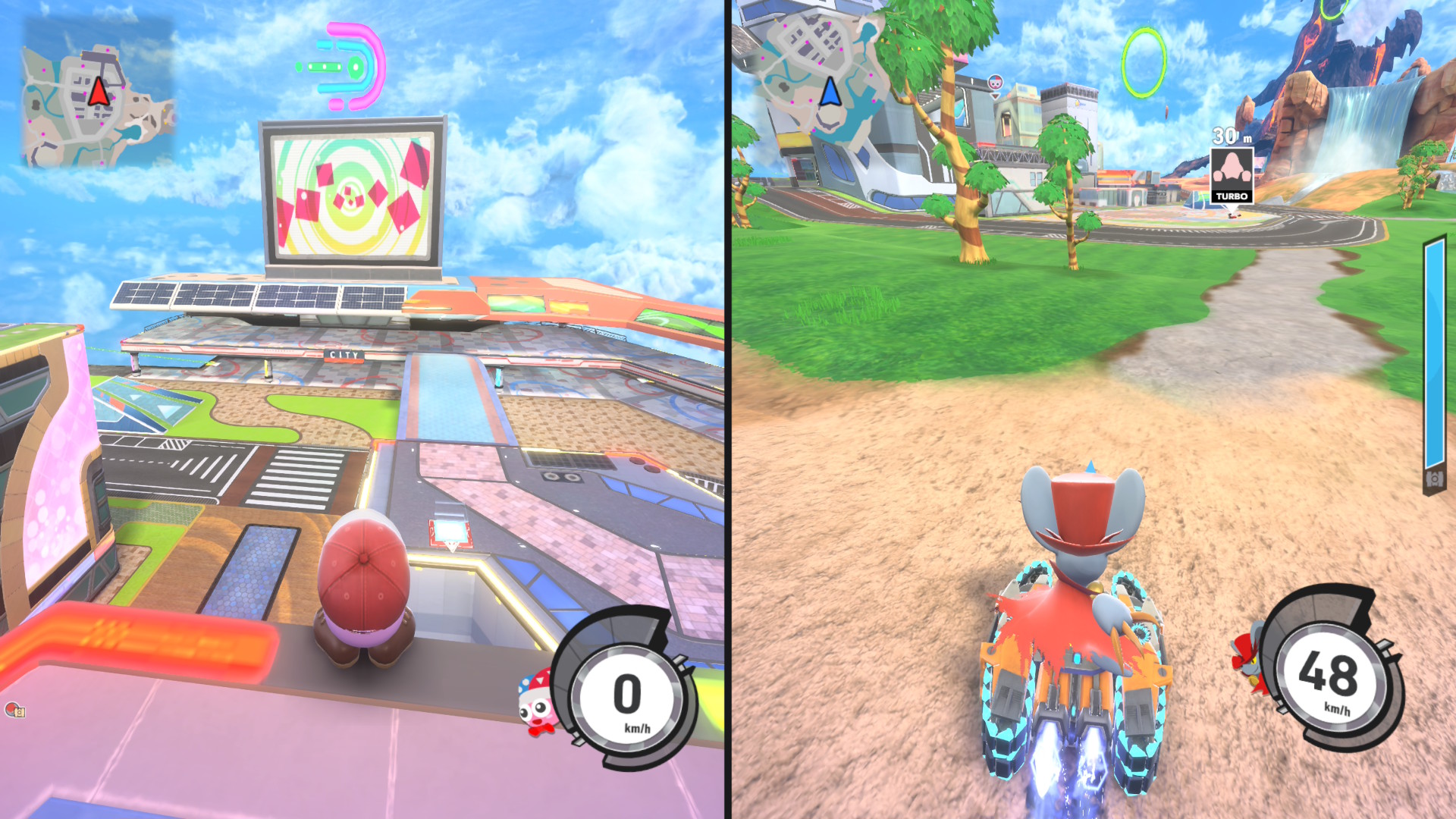 Le mode « City Trial »est unique, car le but est de ramasser le plus possible d’améliorations dans le temps imparti avant d’entrer en confrontation dans un stade de style minijeux. Mais attention, les autres joueurs peuvent aussi vous attaquer. Si votre bolide explose, vous devrez en trouver un autre sur le terrain. Vous aurez également des évènements aléatoires qui peuvent survenir à tout moment.