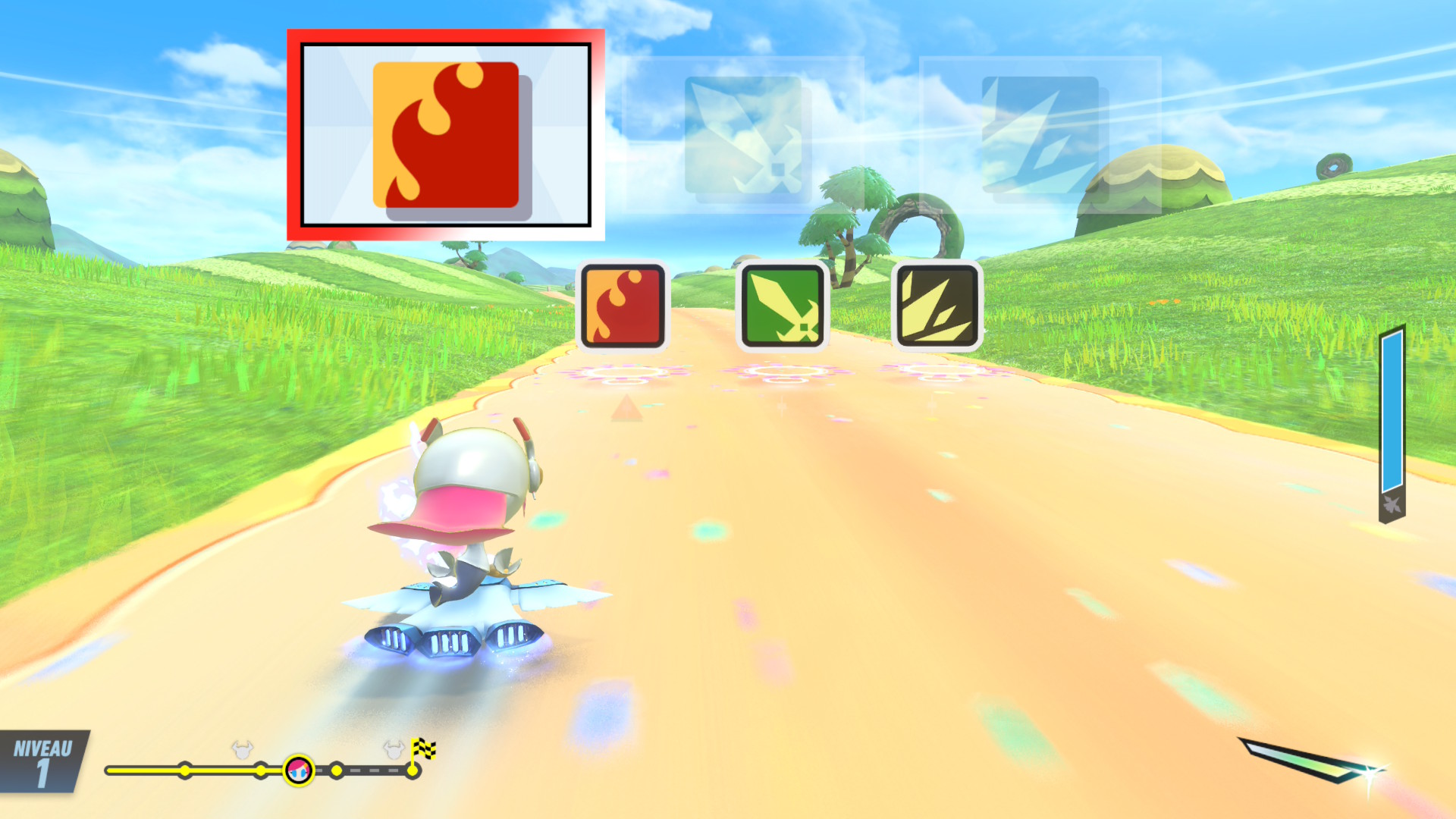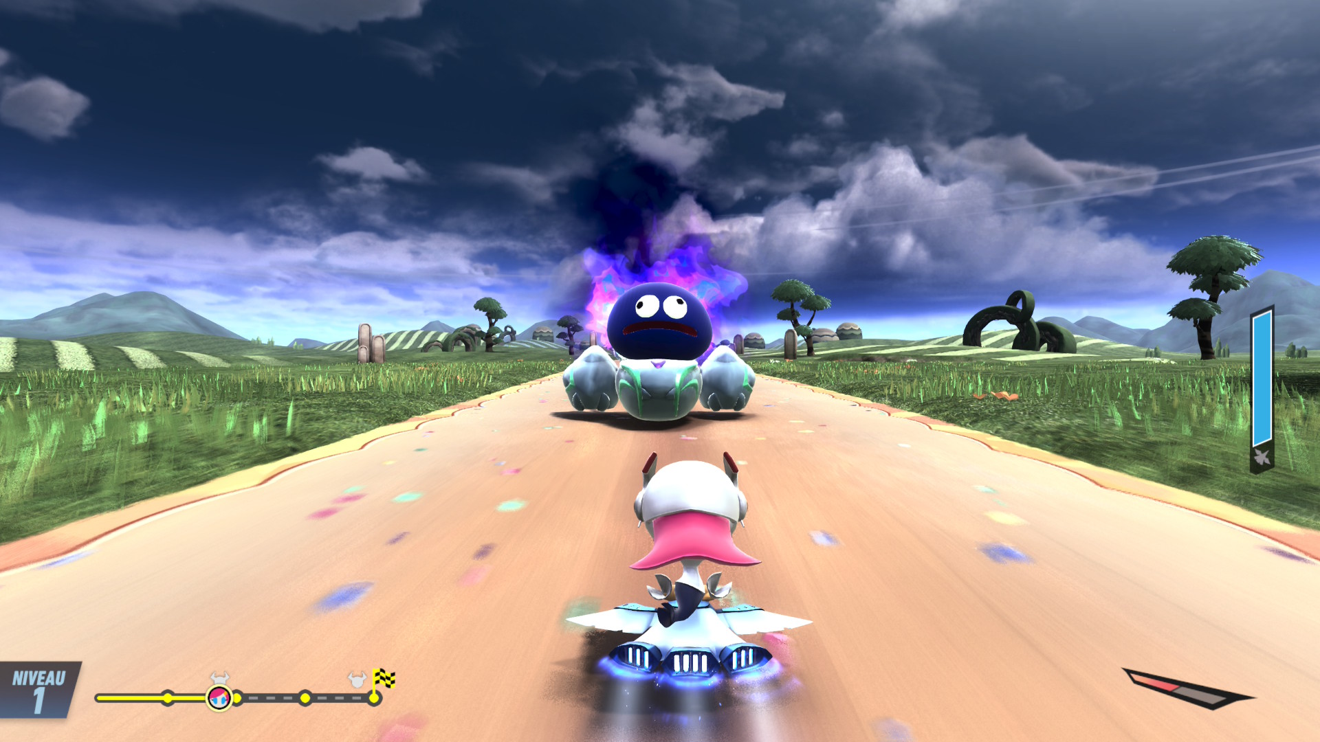 Dans chacun des modes, vous aurez des missions à compléter qui vous permettront de déverrouiller un tas de trucs comme des bolides, des personnages, des courses, des accessoires, des autocollants, des pistes sonores et bien plus. Je suis agréablement surprise par tous les contenus qu’il y a à déverrouiller. Si vous êtes un « complétionniste », vous en aurez pour des heures dans chaque mode. Un point intéressant à noter est que, lorsque vous commencerez le jeu, les tableaux des récompenses sont vides et rien ne vous indique quel objectif vous devez remplir pour obtenir une récompense. Cependant, lorsque vous en aurez obtenu une, il sera possible de survoler les cases adjacentes pour voir ce que vous devez faire. Donc, plus vous jouerez et remporterez de récompenses, plus il sera facile d’identifier ce qu’il reste à faire pour gagner celles qui vous manquent.