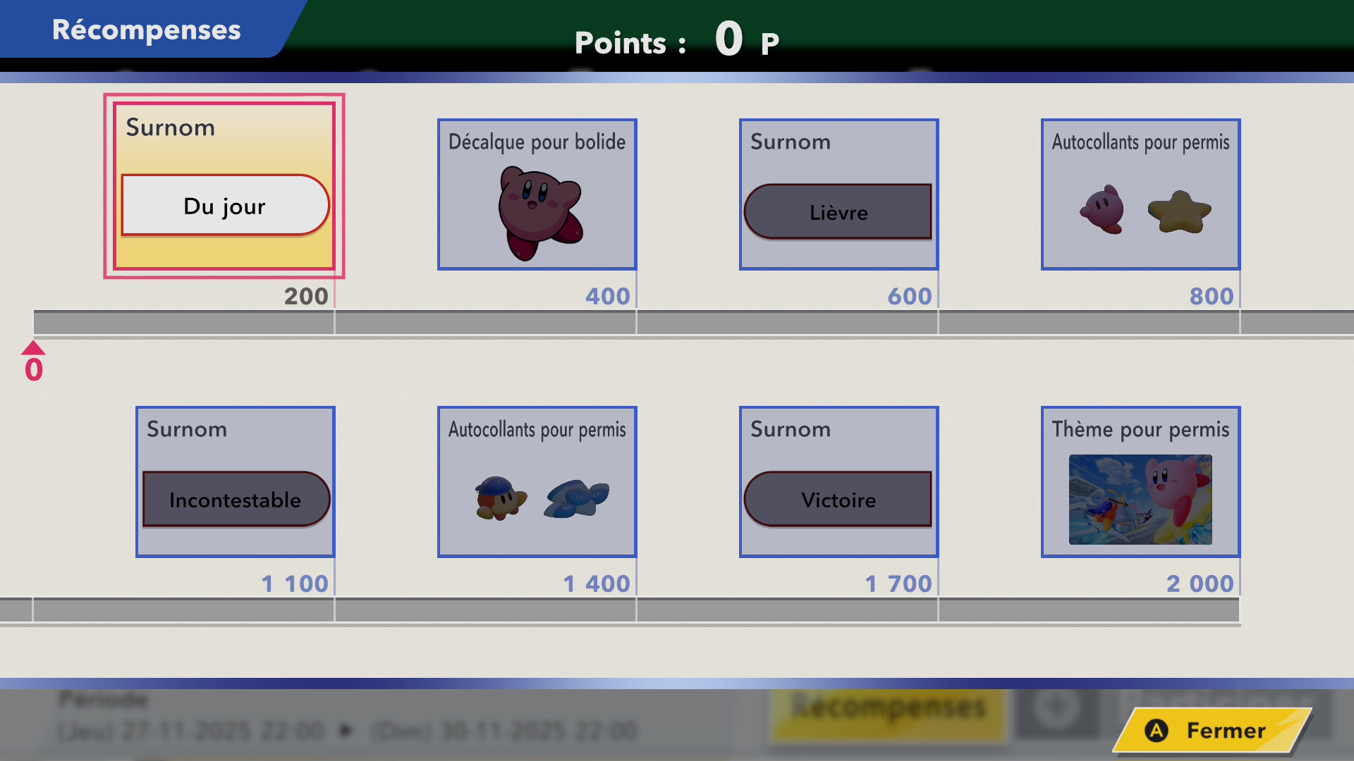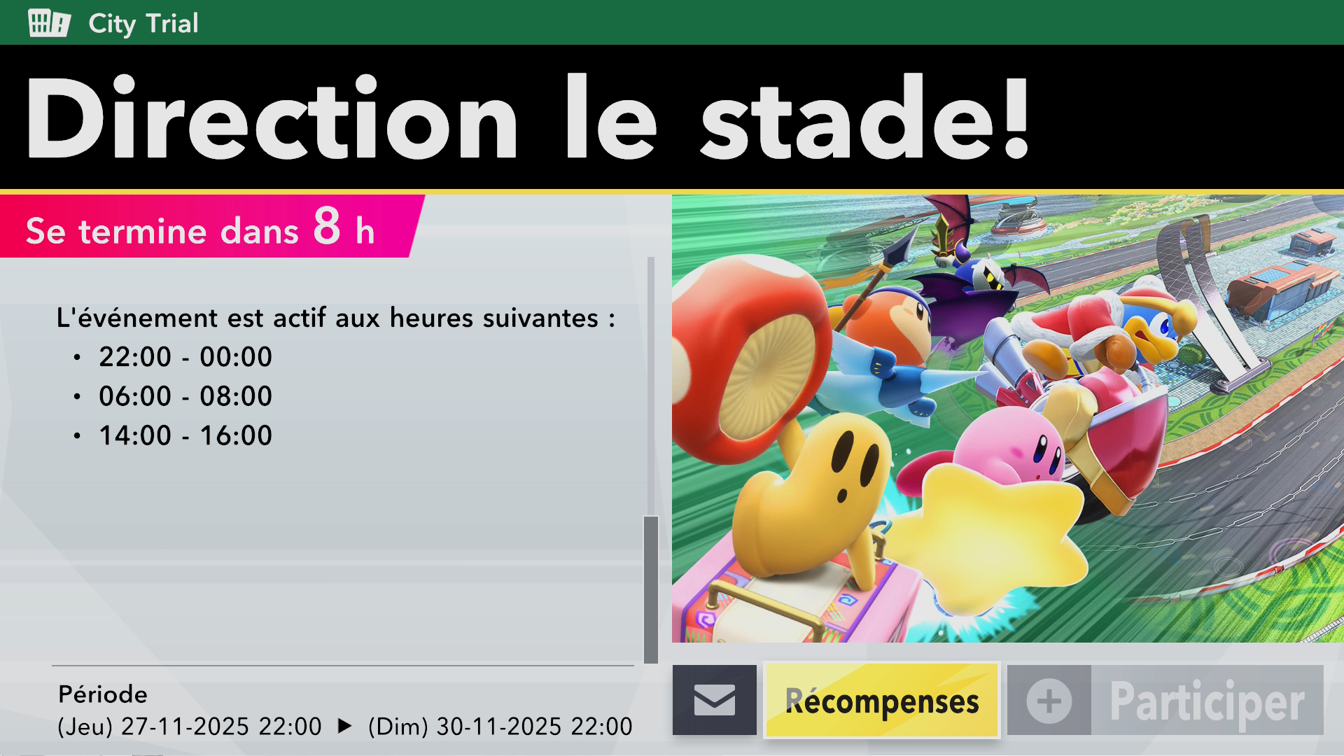 - Certains évènements sont disponibles seulement à des heures spécifiques