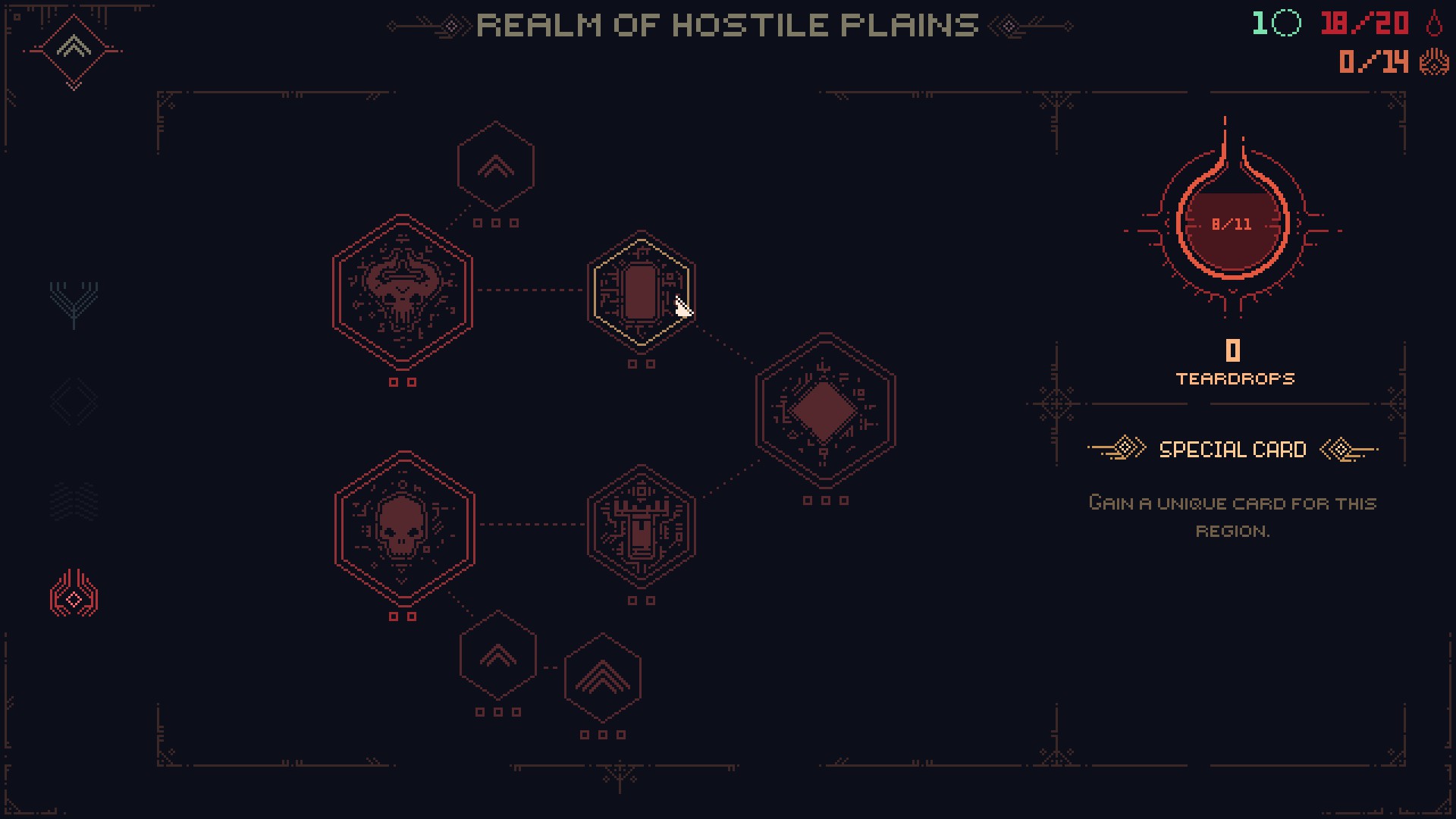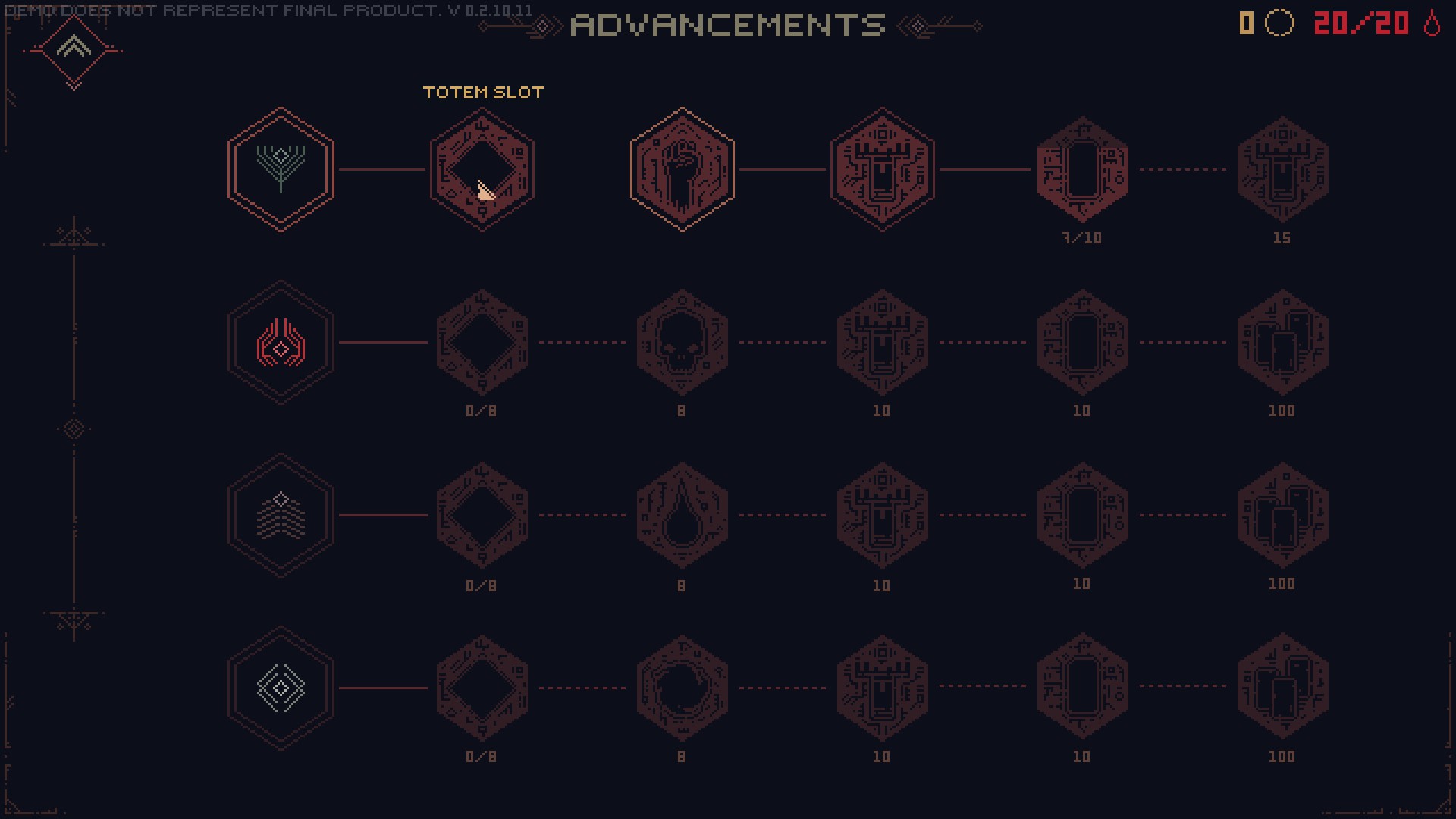 Chaque royaume possède son propre arbre de compétences. Lorsque vous entrez dans un nouveau royaume, l’arbre de compétences de ce royaume est réinitialisé. Chaque arbre propose des compétences et des améliorations différentes, adaptées aux défis et aux types de cartes majoritairement présentes dans chaque zone. Vous devrez donc prioriser les améliorations de base, comme la mobilité, la défense, le coût de mana, etc., au début de chaque nouveau royaume, avant de vous spécialiser dans des branches plus nichées. L’arbre de compétences ne fait pas que rendre votre personnage plus puissant, il dicte la façon dont vous construisez votre paquet et dont vous utilisez chaque carte. Vous déverrouillerez également des emplacements pour les totems chamaniques. Ces derniers procurent des bonus passifs, un peu comme le feraient des artefacts, et peuvent vraiment influencer votre façon de jouer.