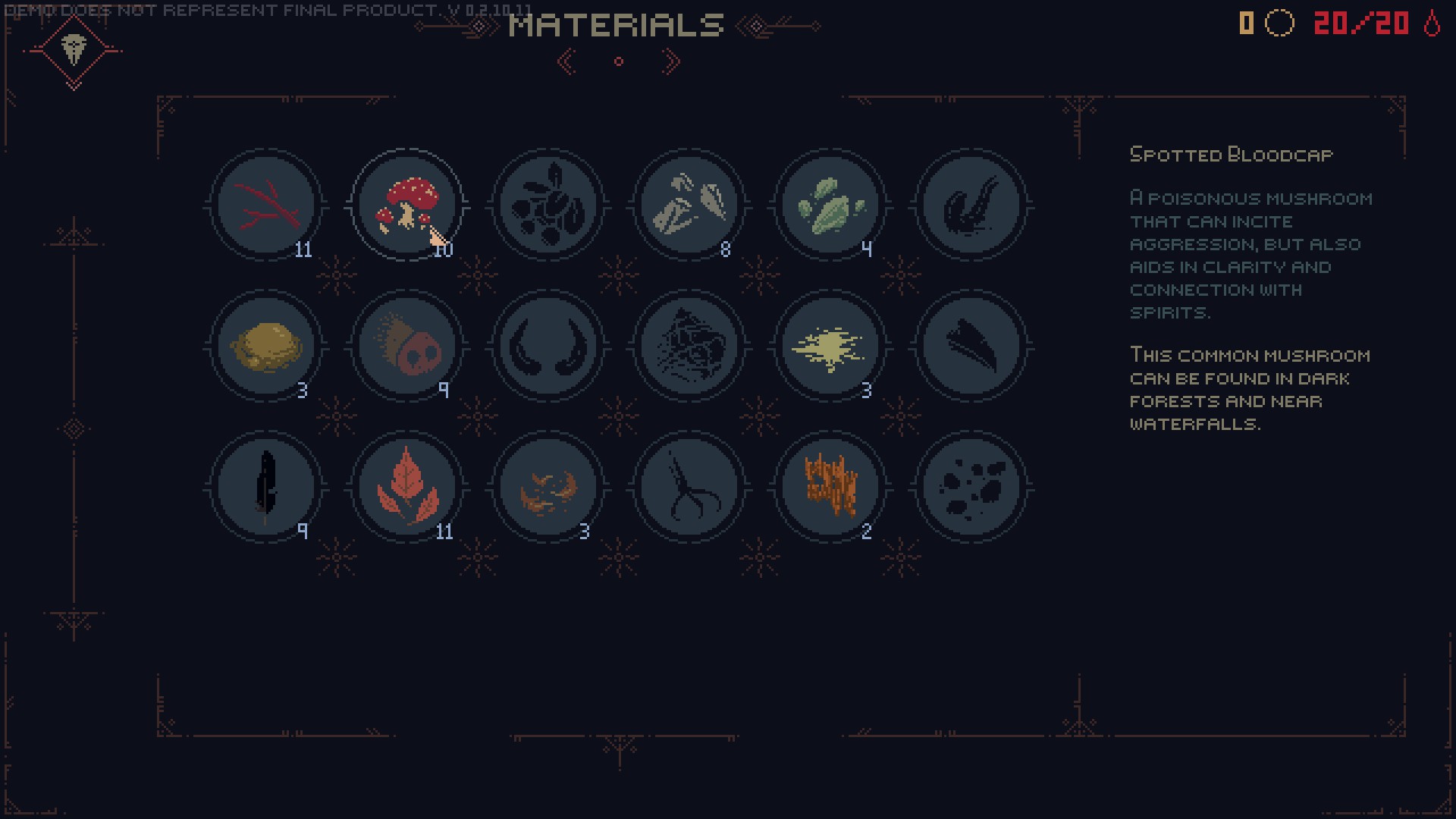 Pour ce qui est de la jouabilité, c’est ici que Death Howl se distingue des autres jeux. En fait, Death Howl est un Deck Builder à la sauce Soulslike. Ces deux genres sont extrêmement populaires, mais se rencontrent rarement. En ce qui concerne l’aspectDeck Builder du jeu, il fonctionne comme la plupart des titres du genre. Death Howl utilise des cartes et le but est de créer un paquet équilibré et efficace qui exploite au maximum les synergies disponibles. Dans la version complète du jeu, plus de 160 cartes sont mises à votre disposition et vous pourrez être très inventif dans la façon de les combiner. Par exemple, certaines cartes vous forceront à en défausser d’autres. Une fois jetées, ces dernières vous donneront un bonus d’attaque ainsi que d’autres effets qui feront pencher les probabilités en votre faveur. Toutefois, bien que de nombreuses cartes soient disponibles, vous ne pourrez qu’en équiper 20 à la fois. Vous devrez donc faire des choix difficiles et vraiment expérimenter avec l’aspect Deck Building du titre pour trouver les cartes qui vous conviennent le mieux selon la situation. Il est possible de créer des paquets axés sur le poison, le sacrifice, la riposte, le mouvement, et bien plus. La collecte de puissants totems chamaniques améliore davantage les options tactiques.