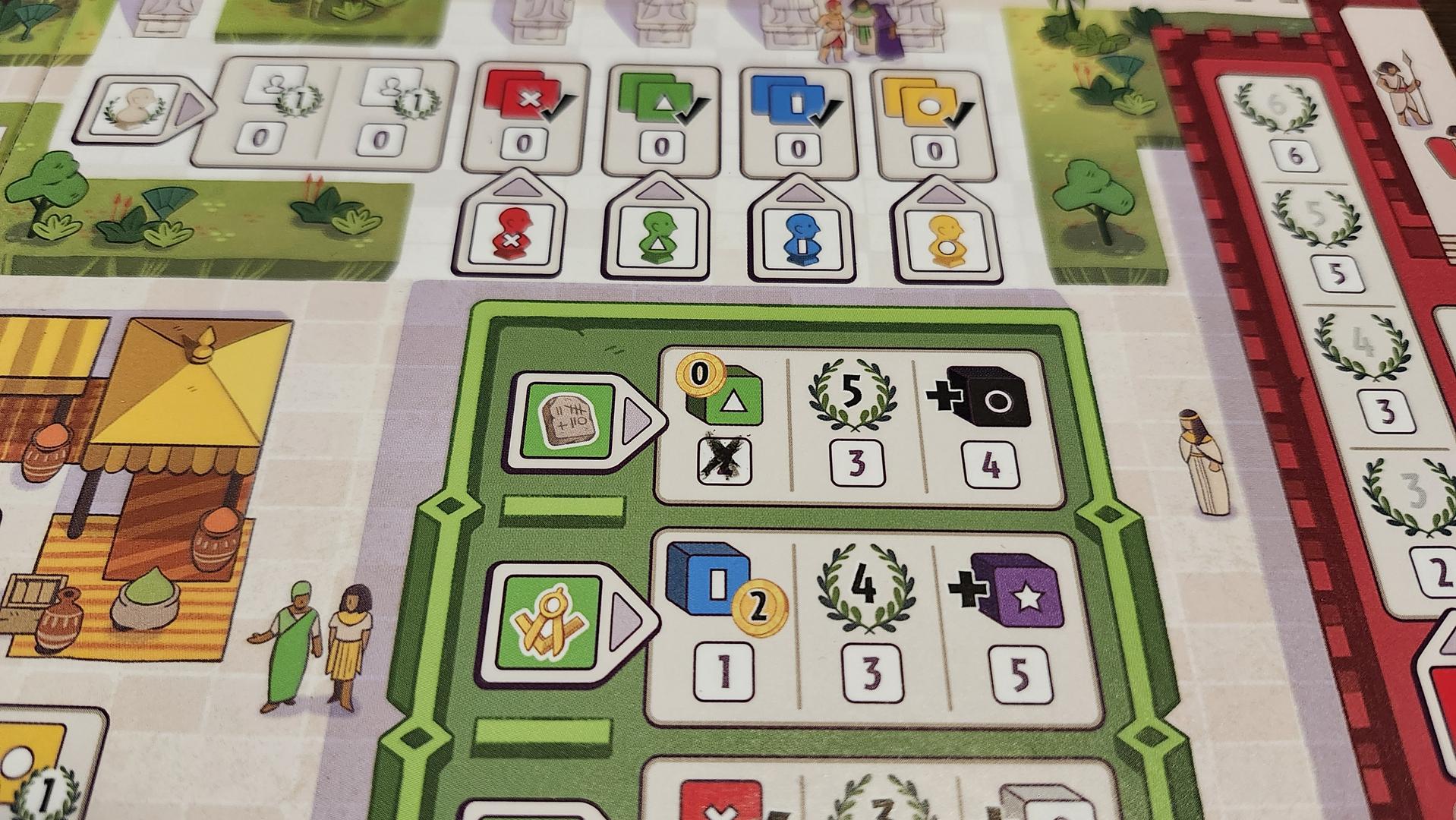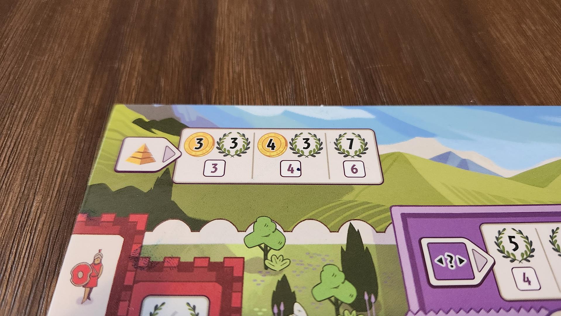 En marquant des bâtiments sur votre plateau, vous marquerez des points ou obtiendrez des améliorations. Pour remporter la partie, chacune de vos décisions est importante. Savoir bien gérer votre or et vos ressources est la base pour avoir une chance de l’emporter. Si vous n’avez pas assez de ressources, vous devrez constamment dépenser de l’or. Et si vous n’avez pas assez de ressources ou d’or pour effectuer une action, vous devrez passer votre tour pour recevoir trois pièces d’or, ce qui peut être dévastateur.