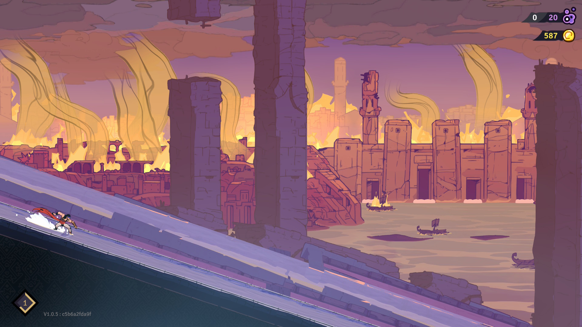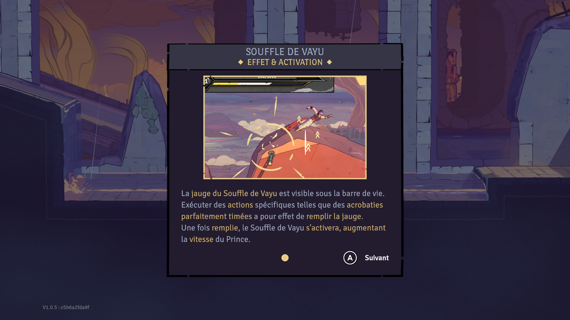 Ce qui rend le gameplay de The Rogue Prince of Persia si unique est l’efficacité avec laquelle les gens de chez Evil Empire ont su mettre les mouvements du Prince à profit dans le jeu. Le Prince peut courir sur les murs du décor, s’arrêter sur des petits poteaux, grimper sur les murs verticaux et dasher. En combinant tous ces mouvements, vous pourrez vous déplacer avec aise dans les niveaux et vous aurez une liberté de mouvement inégalée. De plus, si vous le faites avec assez de grâce, le Souffle de Vayu se déclenchera, ce qui augmentera votre vitesse de déplacement. Mais le Souffle de Vayu n’est pas qu’une simple mécanique de déplacement. Plusieurs médaillons ont des effets qui permettent au Prince de devenir plus puissant lorsque le Souffle de Vayu est activé. C’est donc important de rapidement maîtriser cette mécanique de jeu et d’apprendre à vous déplacer avec grâce, tout comme le ferait le Prince.