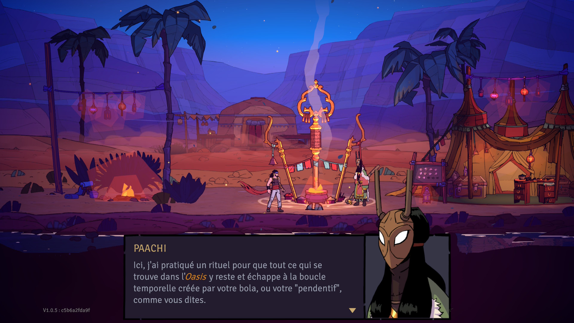 qui garde le monde extérieur dans son état de dévastation jusqu’à ce que le Prince réussisse à accomplir son but. Heureusement, puisque l’Oasis échappe à cette boucle temporelle, vous pourrez progresser et obtenir des améliorations qui, elles, seront permanentes.