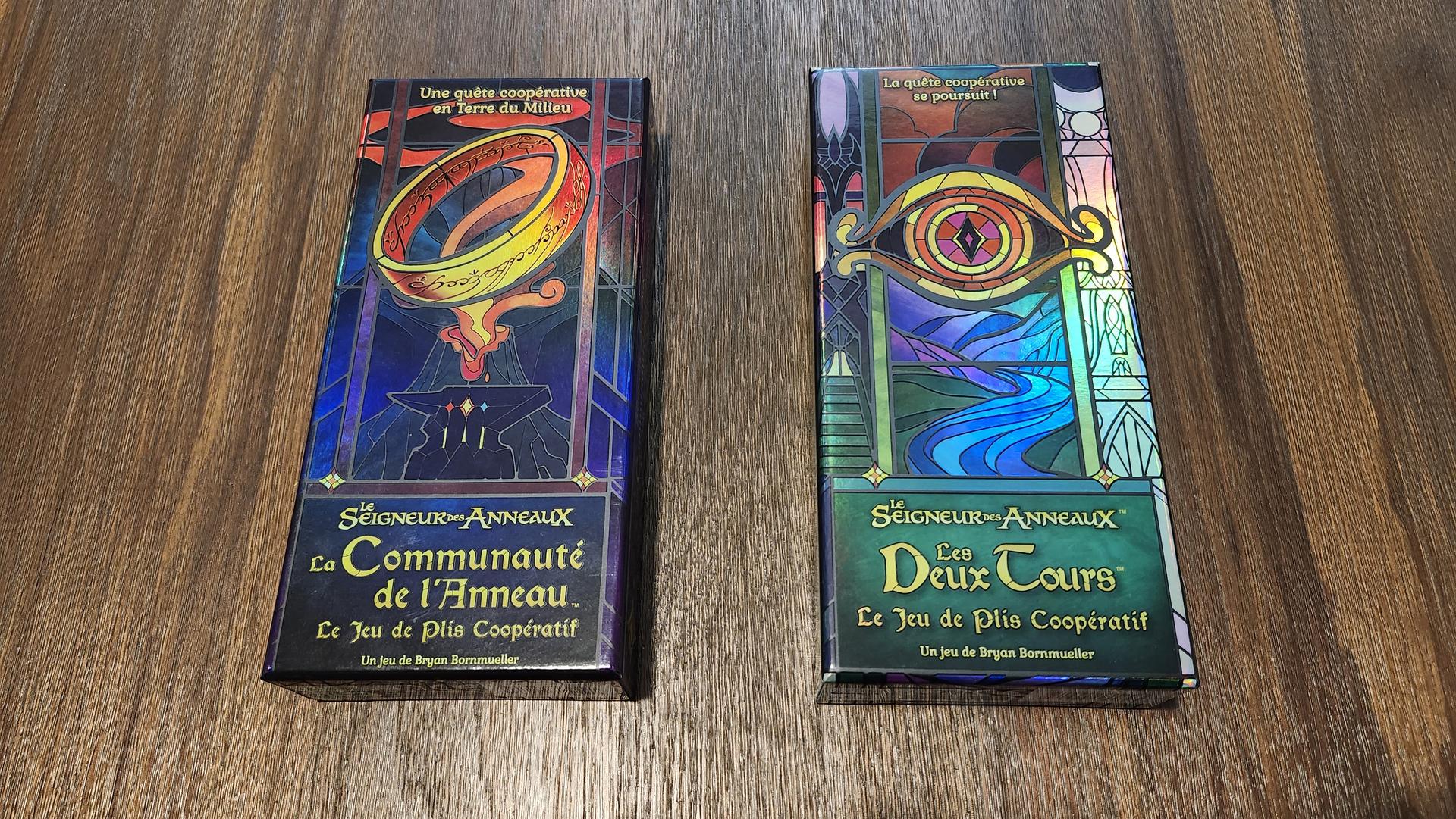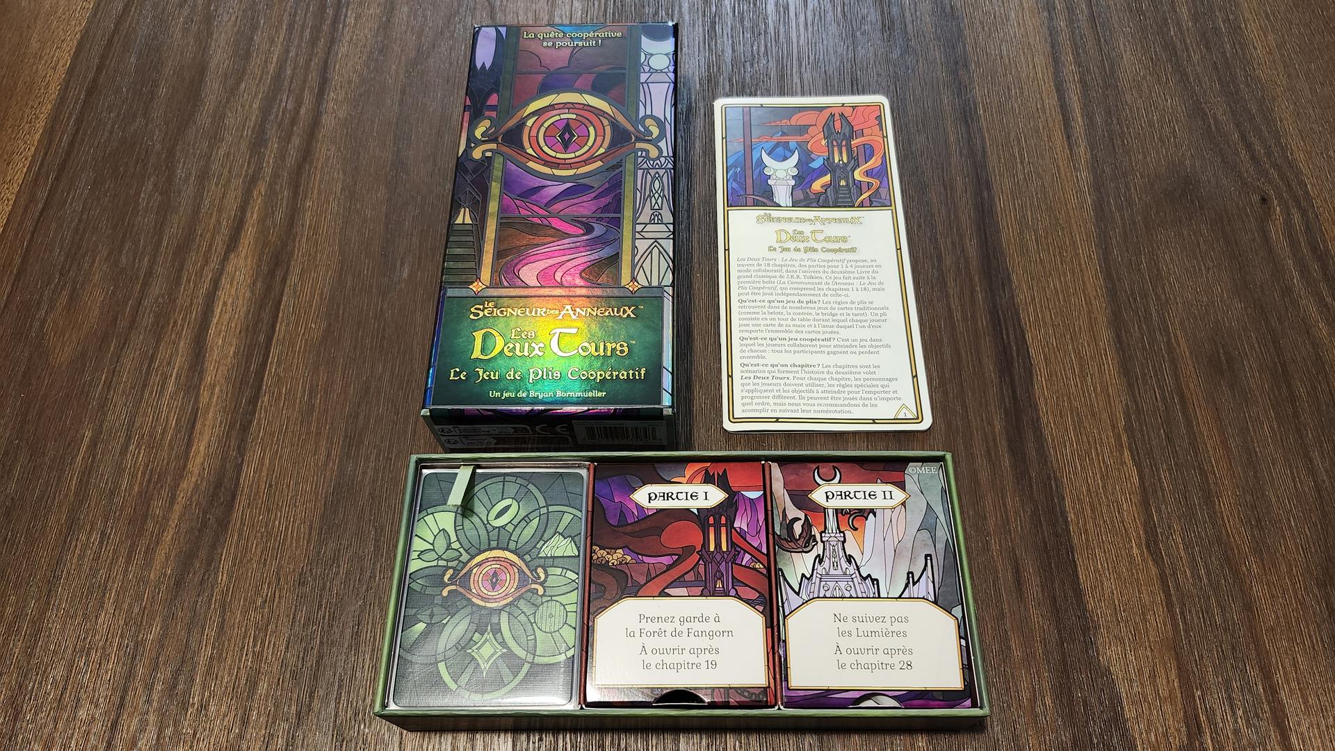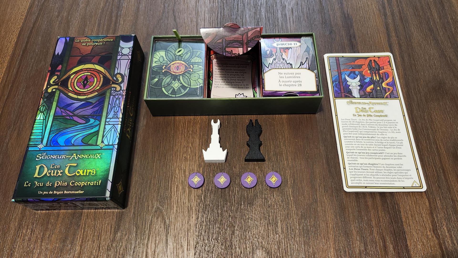 Le Seigneur des Anneaux – Les Deux Tours: Le Jeu de Plis combine deux de mes choses favorites; l’univers de Tolkien et les jeux de plis. Ceux qui suivent un peu les tendances dans le monde des jeux de société savent que les jeux de plis ont pris de l’ampleur dans les dernières années avec des jeux comme The Fox in the Forest, Jekyll vs. Hyde et, surtout, The Crew. Les Deux Tours: Le Jeu de Plis est très similaire à ce dernier. C’est-à-dire qu’il s’agit d’un jeu de plis coopératif avec communications limitées. En fait, ils sont tellement similaires que si vous avez aimé The Crew, vous aimerez assurément Les Deux Tours: Le Jeu de Plis, mais ils sont aussi suffisamment différents pour mériter une place dans votre ludothèque. Parlant de jeux qui se ressemblent, Les Deux Tours ne porte pas ce titre par hasard. En effet, il s’agit du deuxième jeu de la série, le premier étant nommé La Communauté de l’Anneau. Et lorsque l’on compare ces deux titres, nous trouvons aussi suffisamment de différences pour que les deux vaillent la peine d’être possédés. De plus, ils sont non seulement différents, mais Les Deux Tours est la suite directe de la campagne du premier jeu. Alors, si vous avez terminé la première campagne avec votre groupe, vous serez probablement tous ravis de vous replonger dans les terres du milieu! Sans plus tarder, jetons un coup d’œil à ce que Les Deux Tours a à offrir et aux différences majeures entre les deux titres de la série.