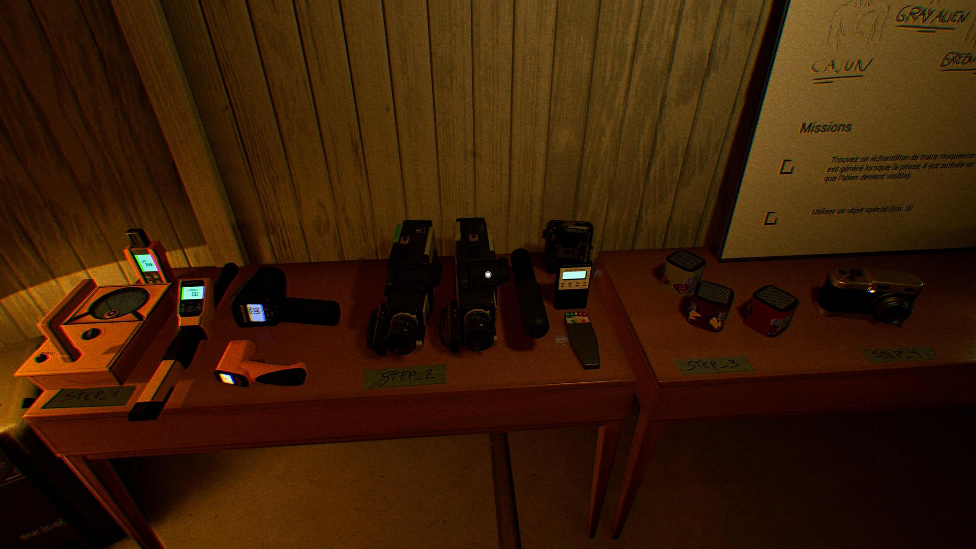 Comme mentionné plus haut, plusieurs outils sont mis à votre disposition, chacun possédant ses propres particularités afin de vous aider à identifier le type d’extraterrestre présent. Parmi eux, seul l’appareil photo est utilisé lors de la phase quatre, puisqu’il sert à collecter des preuves à l’aide de clichés de la créature.