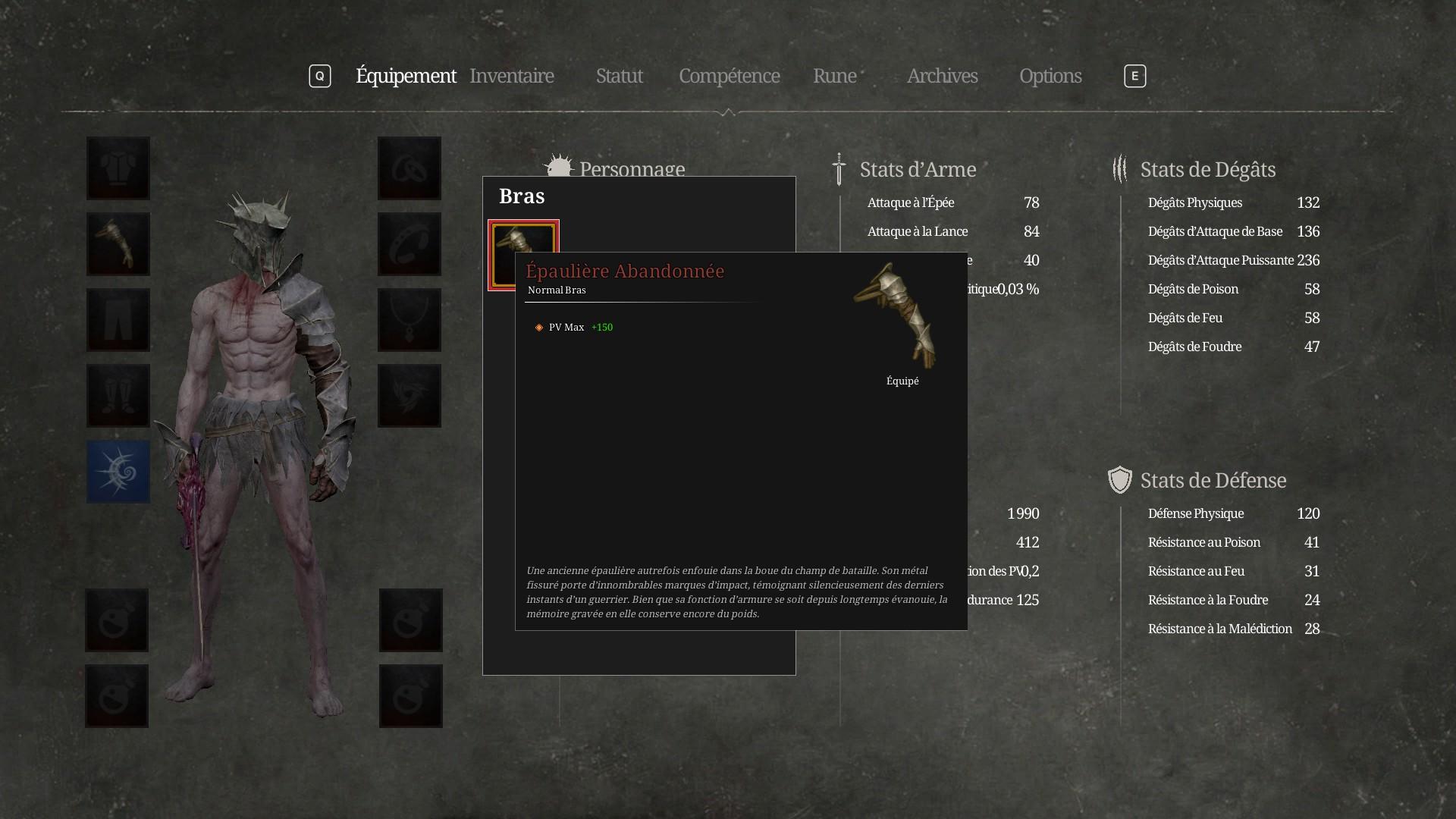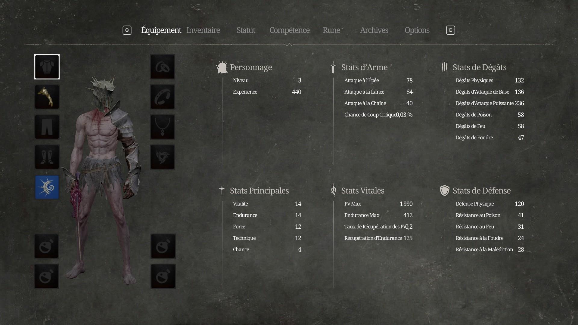 La gestion de l’équipement et des statistiques du personnage reste assez simpliste pour ce type de jeu. Vanran propose une interface simple et neutre, beaucoup plus accessible qu’un Souls, ce qui n’est pas nécessairement une mauvaise chose pour certains joueurs. Mis à part quelques idées intéressantes sur lesquelles je reviendrai plus tard, le reste souffre d’un manque d’originalité et donne surtout l’impression d’un jeu figé dans le temps, se rapprochant fortement des standards des années 2010.