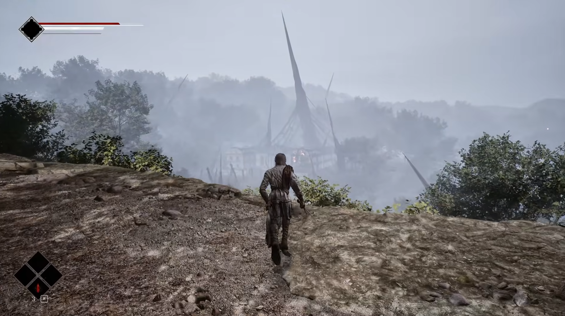 Ce manque de feedback semble provenir d’un déficit au niveau des réactions physiques des ennemis, du bruitage et parfois de la fluidité des animations. J’ai souvent eu l’impression d’attaquer dans le vide, tout en voyant la barre de vie de l’ennemi diminuer, confirmant que l’attaque avait pourtant bel et bien touché la cible. Cette sensation s’applique autant aux ennemis de base qu’aux boss, ce qui est particulièrement dérangeant. La difficulté, élément central des Souls-like, est toutefois bien présente dans Vanran. Par contre, elle découle surtout du fait que les ennemis semblent parfois insensibles à près du tiers de nos attaques. Normalement, un coup réussi devrait au minimum faire reculer l’ennemi ou interrompre son action, ce qui n’est pas toujours le cas ici. Cependant, un élément positif mérite d’être souligné: l’ajout d’un fouet qui permet d’atteindre des zones en hauteur ou éloignées, d’attirer de petits ennemis vers soi ou encore de foncer rapidement sur des adversaires plus imposants. À la fin de la démo, on fait face à un colosse gigantesque, rappelant Shadow of the Colossus. Il n’y a pas de combat à ce moment-là (la démo se termine avant l’affrontement), mais son design laisse fortement croire que l’utilisation du fouet sera essentielle pour escalader cette créature et en venir à bout. Si cette mécanique est pleinement exploitée dans la version finale, elle pourrait apporter une véritable touche d’originalité et offrir un vent de fraîcheur au jeu, lui permettant ainsi de se démarquer de simples copies du genre.