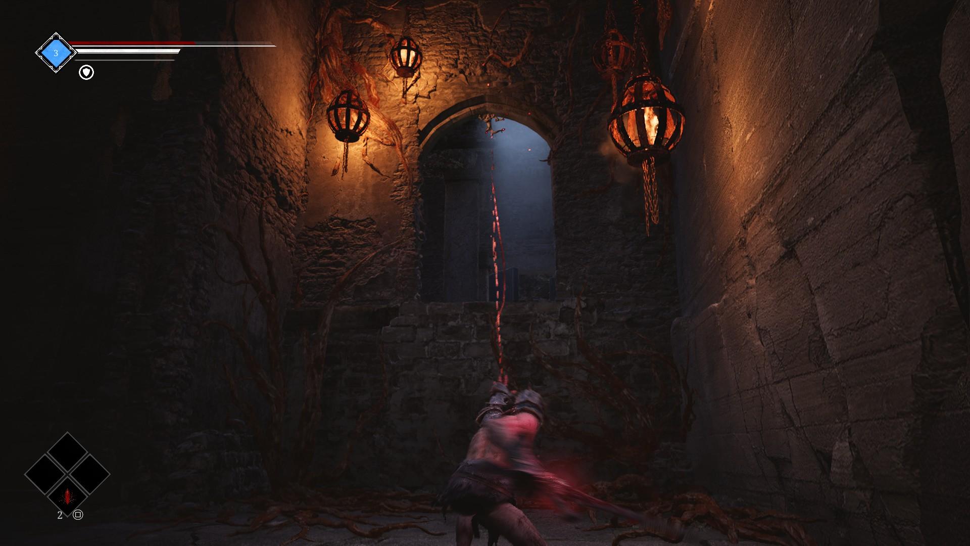 La démo débute dans un environnement brumeux, s’apparentant à une forêt peuplée de gardes et de bêtes féroces. On se déplace ensuite vers un palais délabré, pour finalement atteindre les profondeurs de ce qui ressemble à une prison destinée aux âmes perdues. Peu importe l’environnement proposé, le style visuel demeure assez neutre, avec des textures simples, parfois même grossières, et une forte répétition des éléments visuels. De plus, les éléments du décor sont fixes, ce qui donne une drôle d’impression lors de l’exploration. Je prends, par exemple, la forêt dans laquelle aucune feuille d’arbre ne bouge à cause du vent.