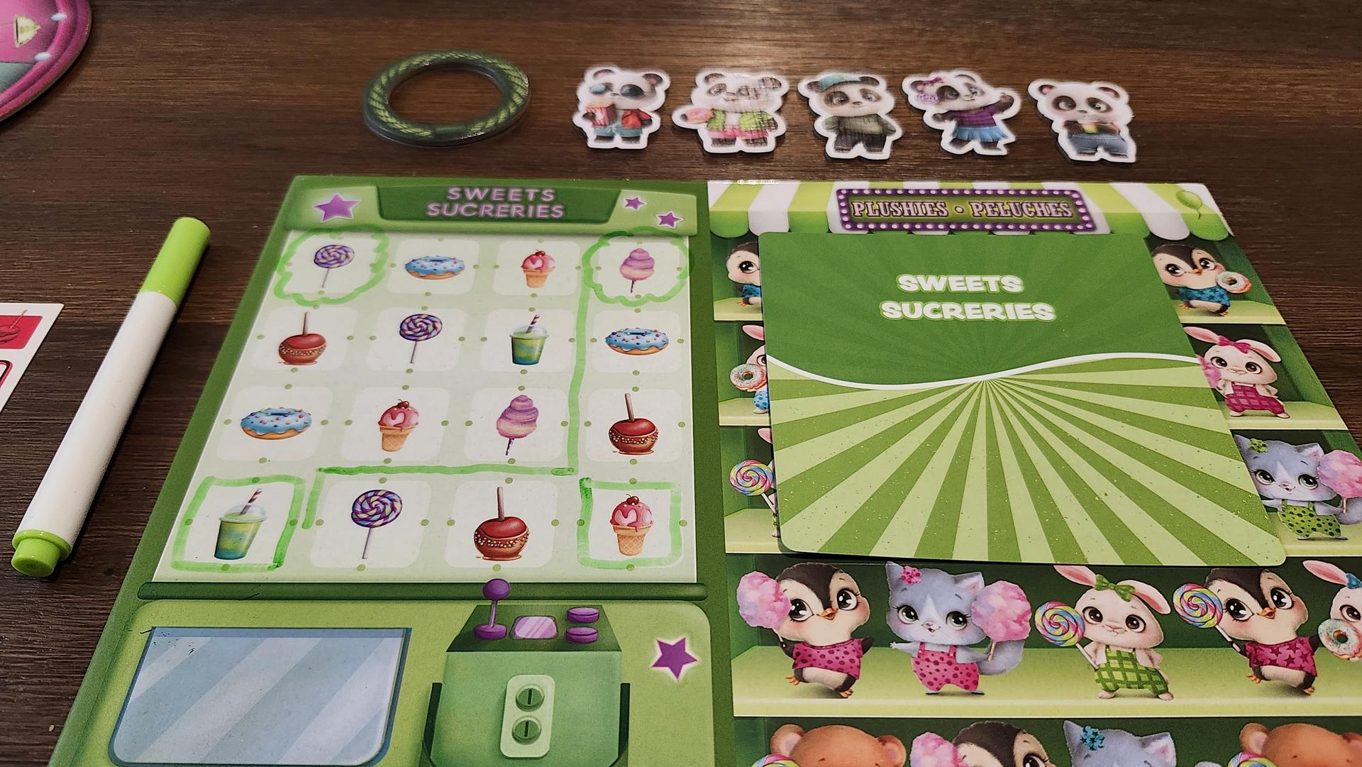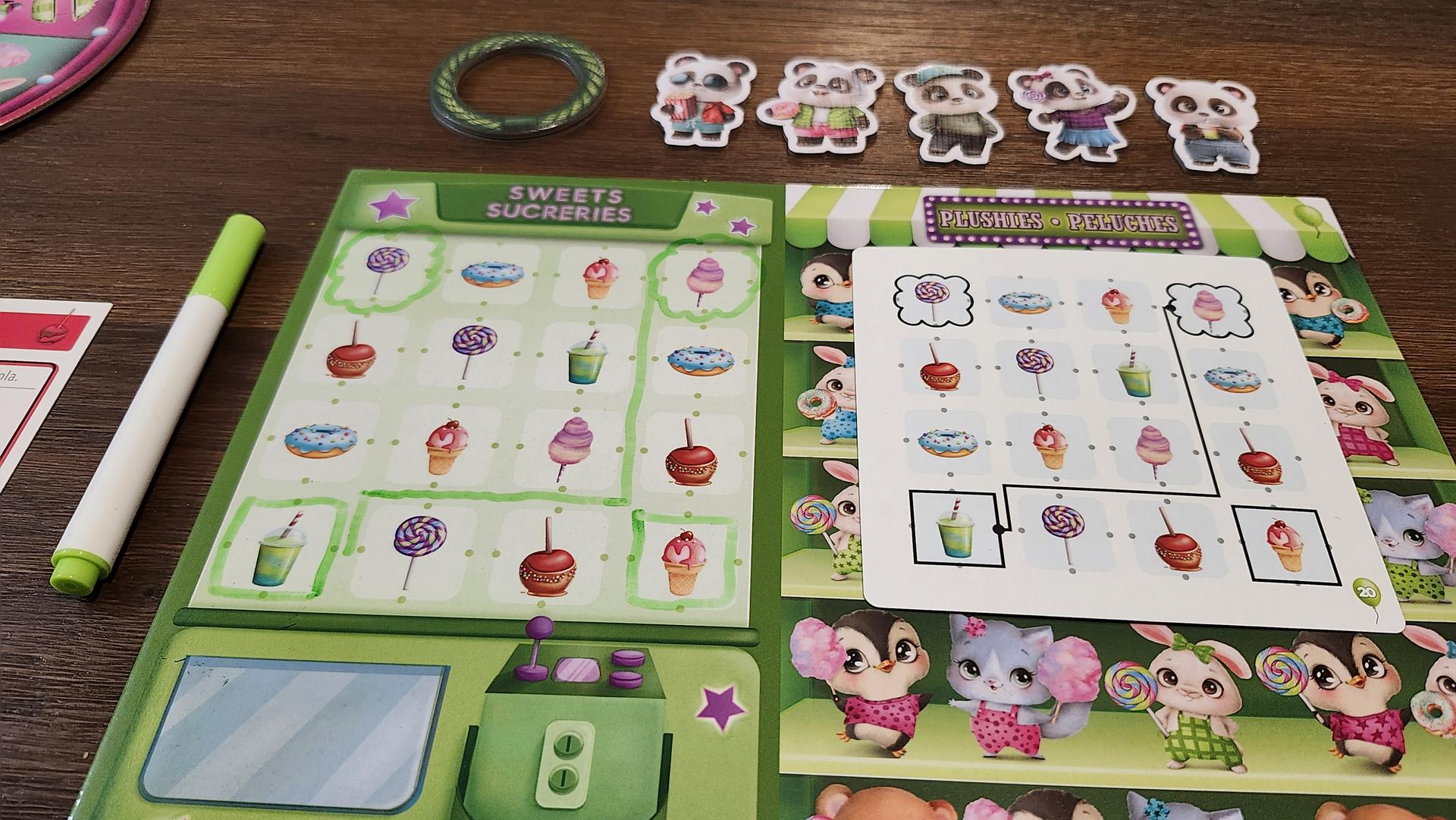 Le dernier défi est celui des peluches, qui en est un d’observation. Il est le plus facile et le moins intéressant des trois. Il suffit de trouver la peluche de la bonne couleur avec les vêtements avec le bon imprimé et le bon objet en main en regardant les indices donnés sur la carte et en les comparant avec les peluches présentes sur le plateau de joueur. J’ai trouvé ce défi moins intéressant, mais ma fille l’a tout de même aimé, même si c’est celui qu’elle souhaite le moins faire.