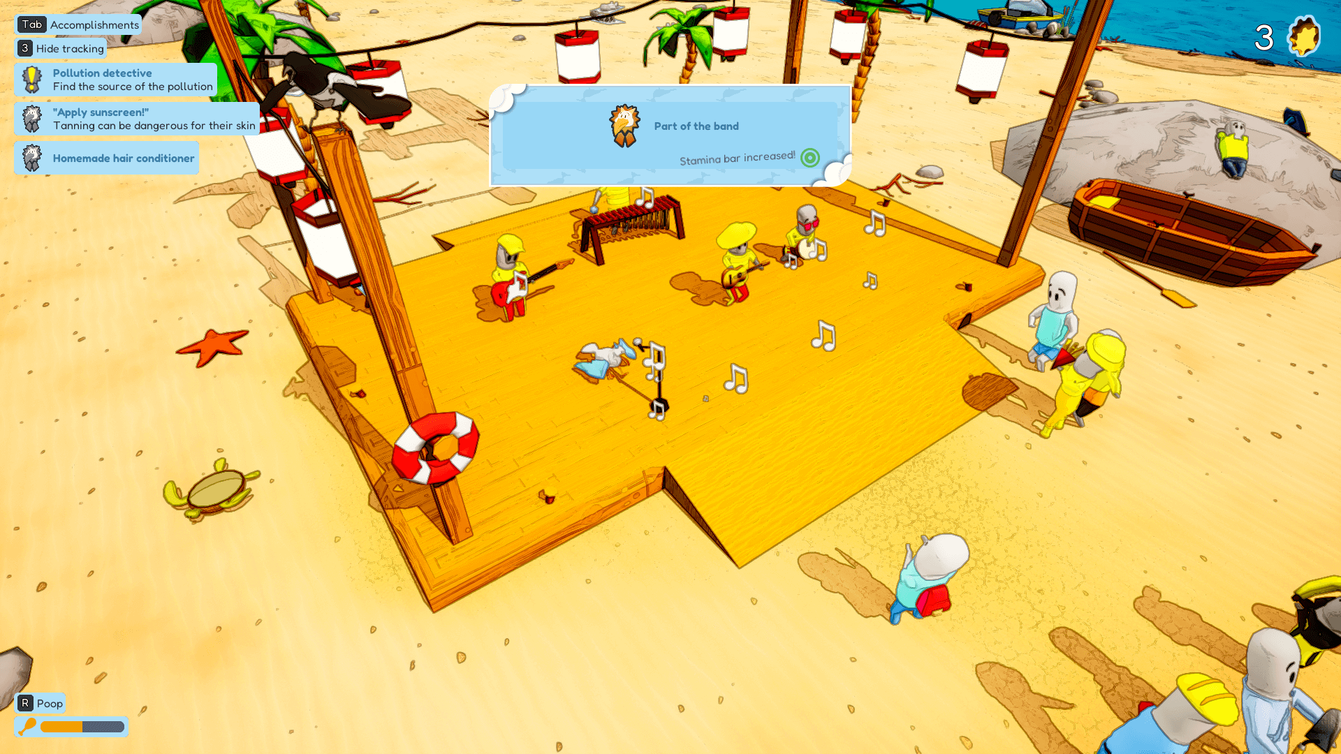 Voler des collations, porter secours à quelqu’un qui se noie, guider des moutons sur un terrain de golf, mettre un aileron de surf sur sa tête pour se faire passer pour un requin, et connaissez-vous le TicTacPoo? Cela fait partie des choses que l’on peut faire dans le jeu. En embêtant les mauvaises personnes, on peut même se retrouver en prison, mais il doit bien y avoir un moyen de s’évader…