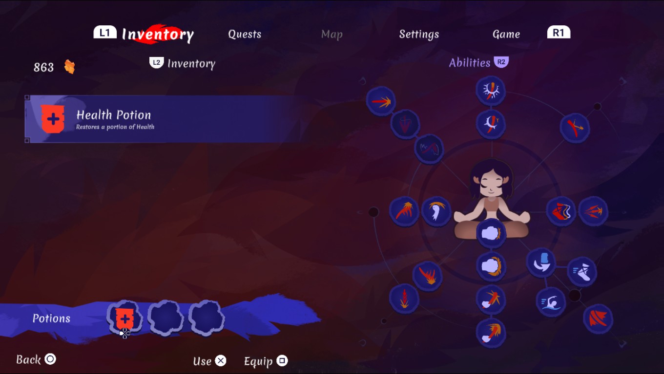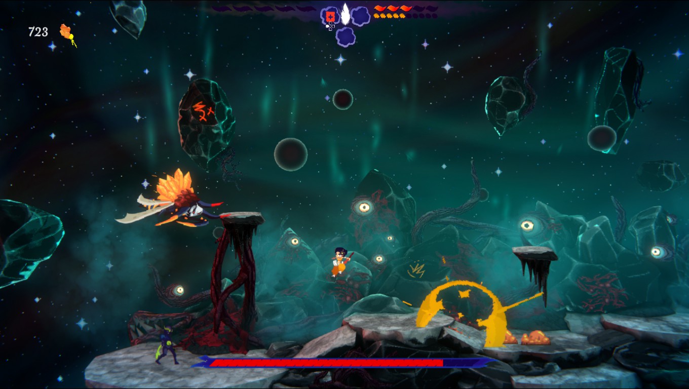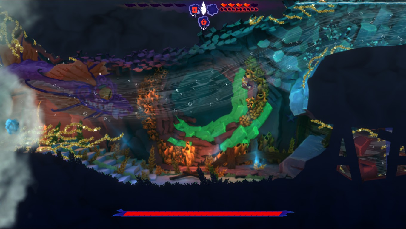Cependant, tout n’est pas parfaitement affûté. Les déplacements de Mako sont lents par rapport à son arsenal de mobilité et ses coups portés l’arrêtent net et la ralentissent, ce qui casse la fluidité. L’univers sonore est bien, mais n’ajoute pas une touche de magie à la hauteur du visuel. Les hit-box sont imprécises et la quantité de routes possibles rendent la lisibilité du parcours parfois confuse. Dans un Metroidvania axé sur la mobilité et la technique, la sensation doit être irréprochable. Pour l’instant, on sent le potentiel, mais aussi le besoin de faire quelques ajustements.