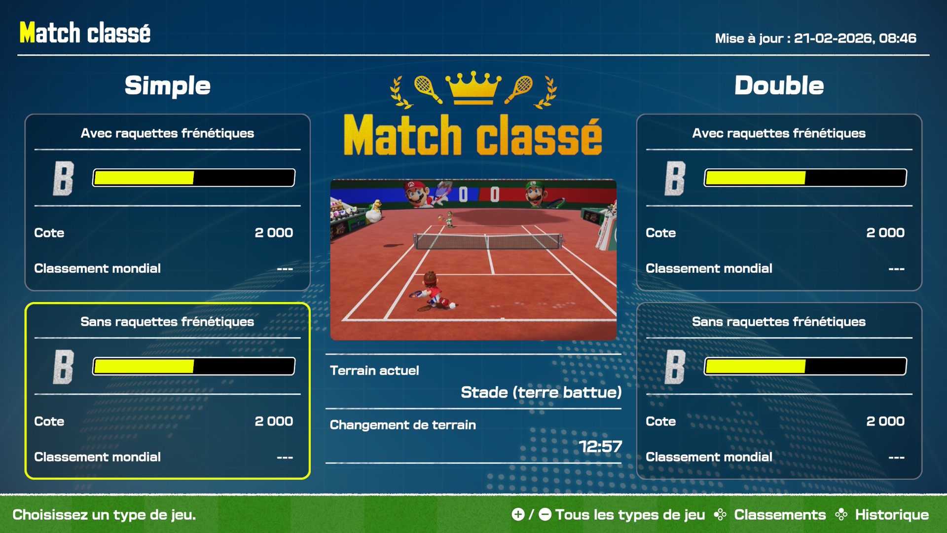 Ici, je vais faire un court résumé de tous les autres modes offerts dans Mario Tennis Fever. C’est plutôt simple et chacun d’eux est facile à comprendre, mais c’est tout de même important de faire le tour de chacun d’entre eux.