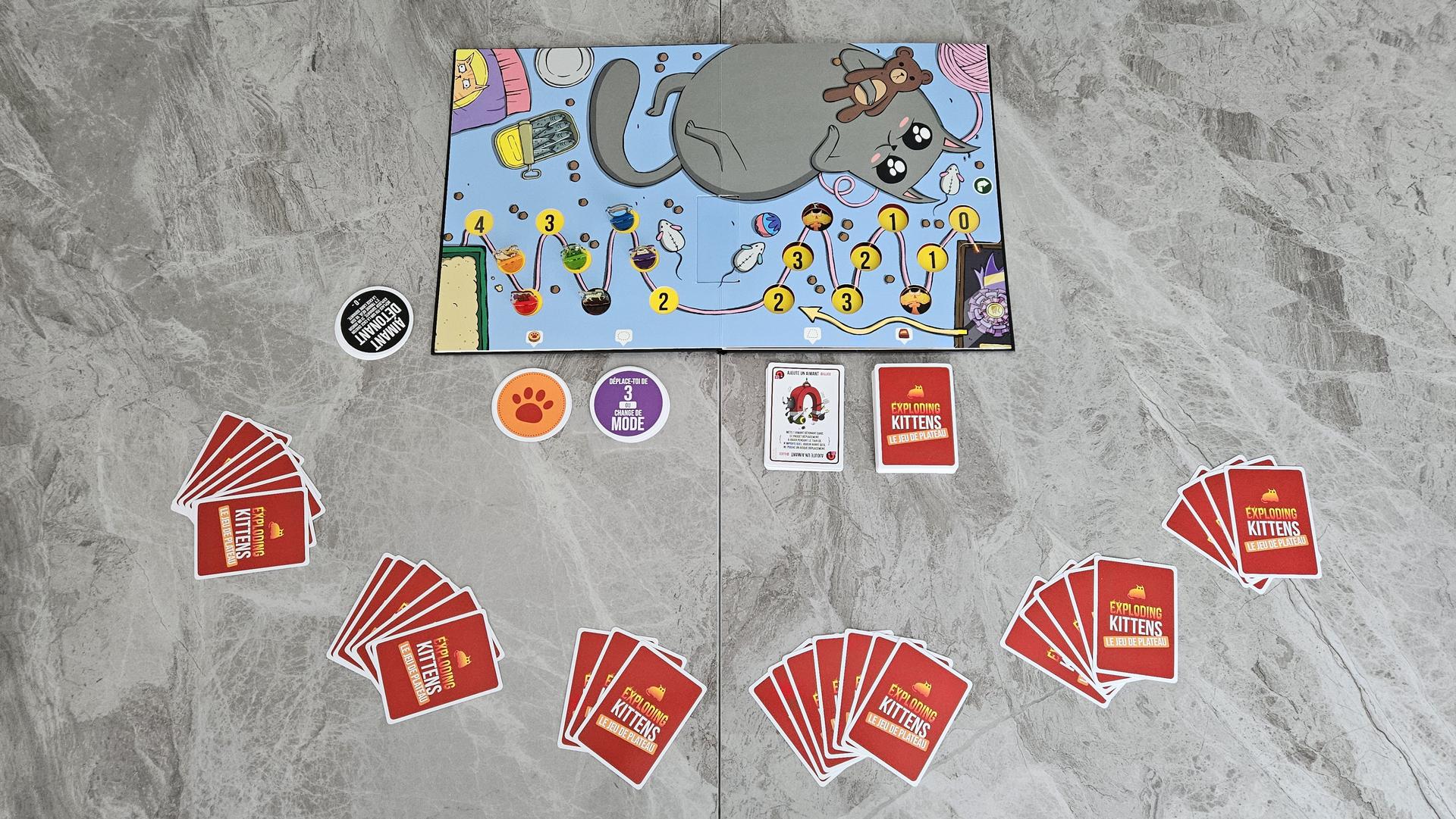 Dans Exploding Kittens: Le Jeu de Plateau, le principe est simple. Vous devrez faire avancer votre chat de la ligne de départ (la litière), jusqu’à la médaille de chat (la ligne d’arrivée). Ça semble simple, mais vous devez arriver exactement sur la case fin, sinon vous serez dans l’obligation de revenir en arrière et de recommencer à la moitié du plateau de jeu et chaque joueur a le même objectif. Mais ce n’est pas tout, vous aurez des cartes entre les mains pour vous aider à arriver le premier et pour ralentir la progression des autres chats.