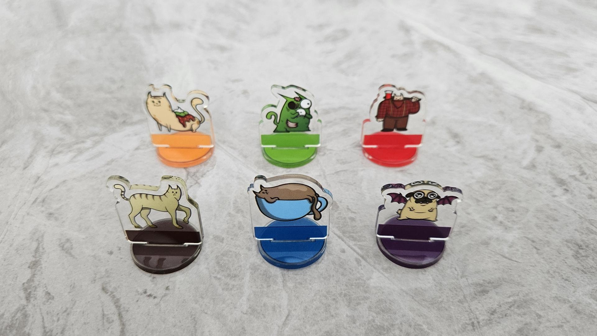 Dans cette édition « Super Fan », vous retrouverez des pions de personnages en acrylique qui remplacent les pions en carton de la version standard. Ça ne change rien au jeu en lui-même, mais la qualité offerte dans la version de luxe est, selon moi, une dépense bien justifiée. La différence de prix d’environ 10$ est négligeable pour avoir des pièces de bien meilleure qualité. Vous aurez aussi droit à deux cartes exclusives en quatre exemplaires chacune pour un total de huit cartes additionnelles. Encore une fois, rien n’est révolutionnaire, mais c’est suffisant pour justifier la différence de prix.