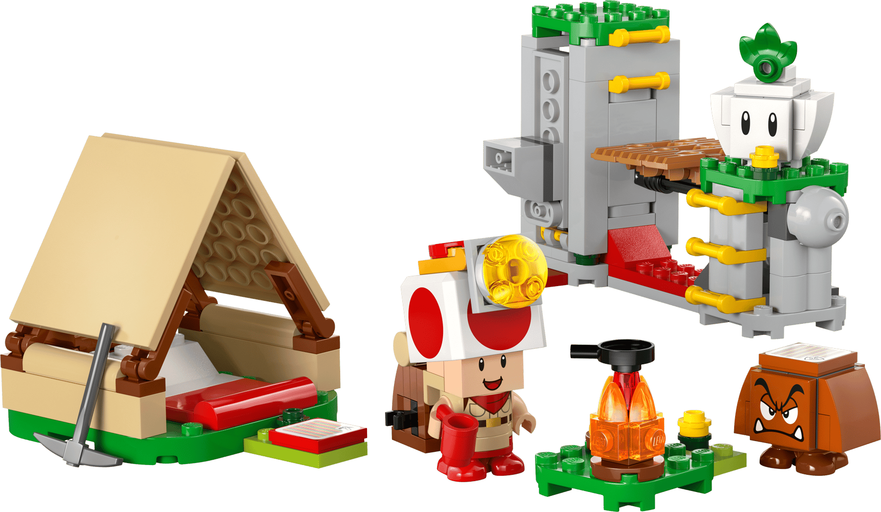 o Les enfants peuvent construire le camp du Capitaine Toad, avec une tente, un feu de camp, un pont escamotable et un coffre au trésor caché.