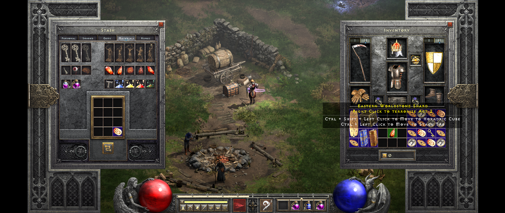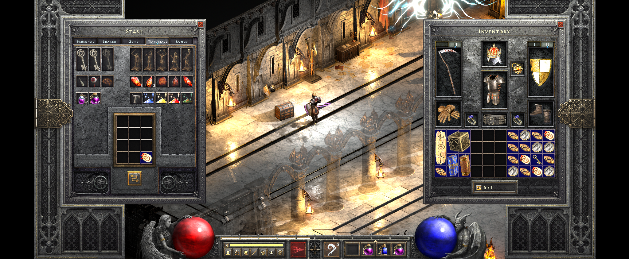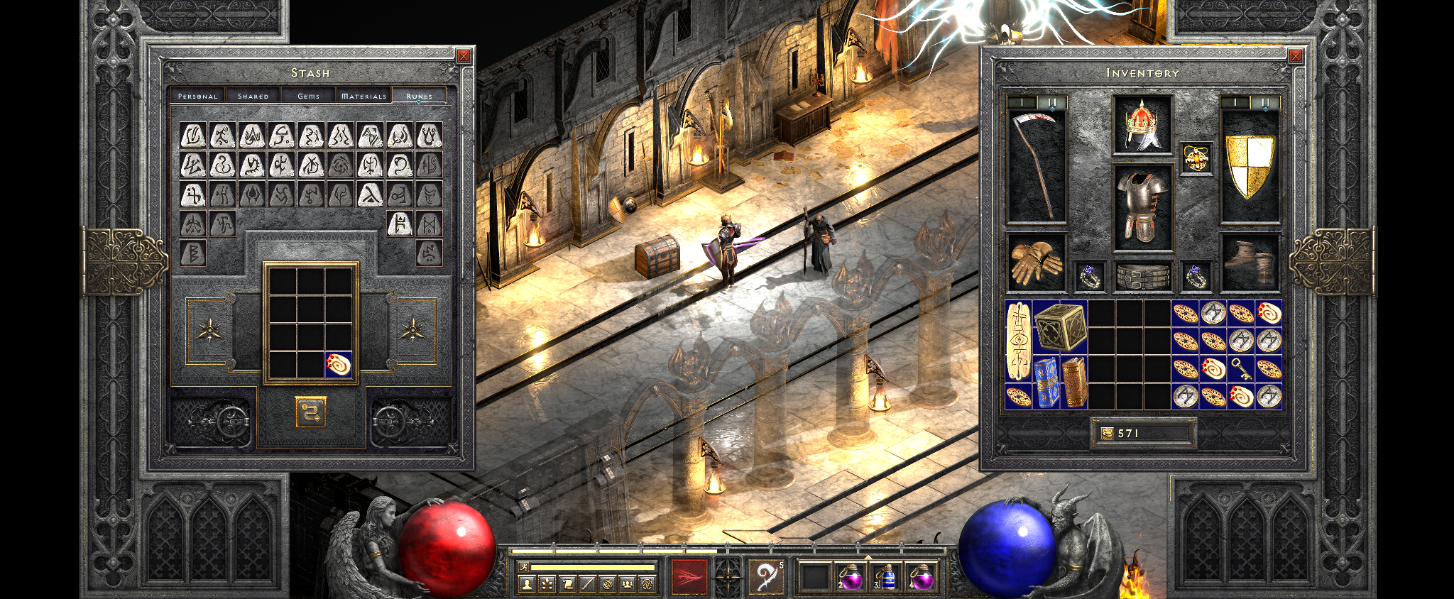Une autre amélioration de la qualité de vie à laquelle nous avons eu droit est l’amélioration du coffre. On s’est tous déjà retrouvé perdu dans toutes nos runes ou objets de farming comme les clés pour les « Ubers ». Maintenant, c’est chose du passé! Vous aurez droit à de tout nouveaux onglets qui servent spécialement à empiler ce qui peut être empilé (potions mauves, clés, statuettes, gemmes de toutes les qualités et aussi les runes). De plus, c’est une augmentation de la taille du coffre et une gestion plus facile que jamais. Et ça veut surtout dire: fini les mules de runes et de gemmes!