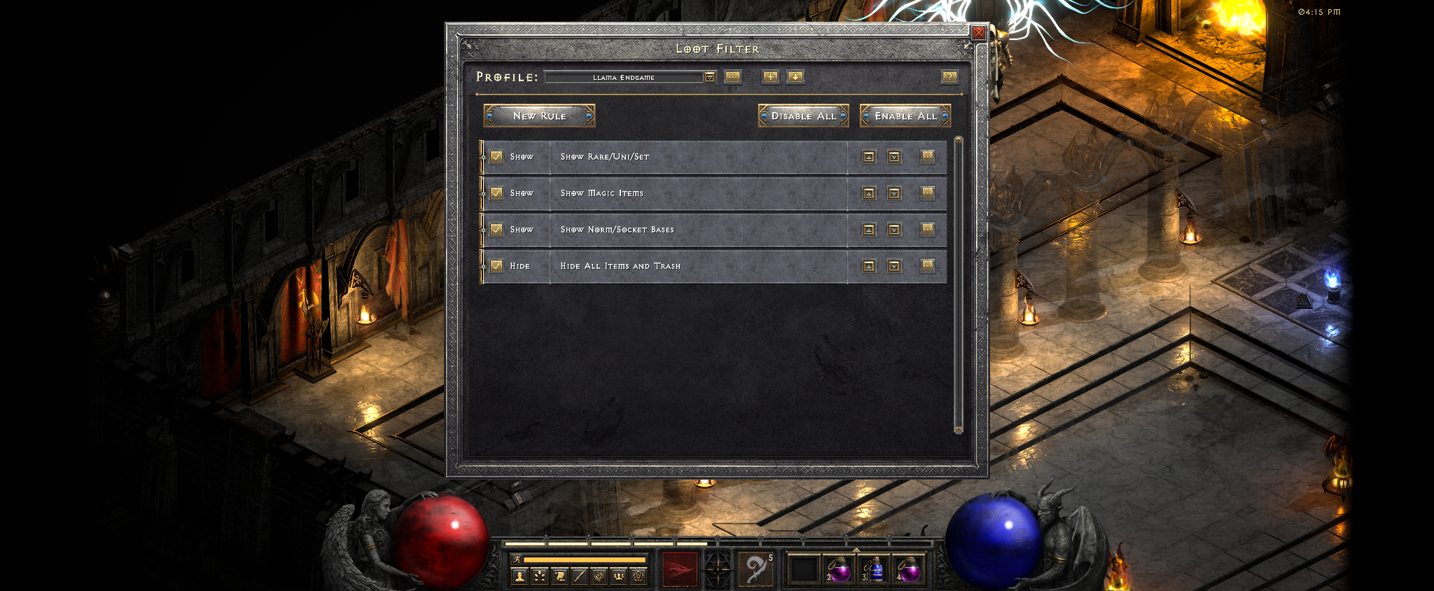 Les fans de Diablo le savent, l’écran est souvent inondé de beaucoup d’objets lorsque l’on tue les monstres. Malheureusement, c’est très rare de tomber sur des objets qui valent réellement la peine d’être ramassés. Mais réjouissez-vous, le loot filter est arrivé! Avec cette fonctionnalité, on peut officiellement se concentrer à tuer et ne s’arrêter que lorsque l’on voit un objet tomber et non pas s’arrêter, analyser et repartir. C’est tellement tranquille à l’écran que, parfois il m’est arrivé de vérifier si j’avais bien activé l’affichage des objets, car je ne voyais aucun objet.