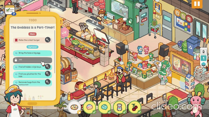 Lost and Found Co ne se limite pas uniquement à la recherche d’objets. Le jeu propose également une série de quêtes secondaires à compléter dans chacun des environnements. Par exemple, certains niveaux vous demanderont de trouver des ninjas cachés dans la zone explorée, de repérer des dizaines d’insectes dans un restaurant ou encore de ramasser des assiettes sales. Ces objectifs secondaires ajoutent beaucoup de variété et rallonge le jeu d’une bonne façon.