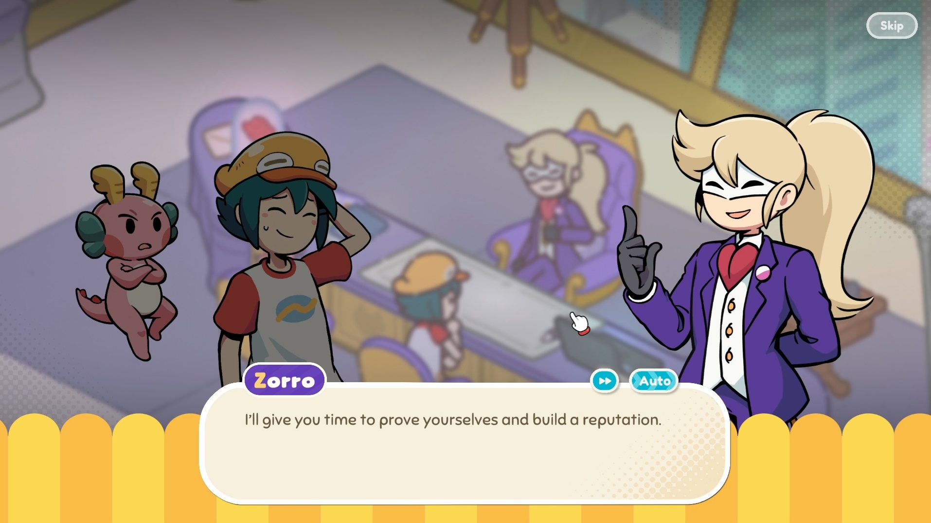 En plus des quêtes liées à l’histoire principale, certaines requêtes de citoyens nous sont transmises dans notre téléphone. En remplissant ces demandes spéciales, on augmente notre popularité et l’on peut également obtenir divers objets en récompense afin d’améliorer la décoration de notre temple, qui sert de bureau à la compagnie fraîchement fondée par Mei et Ducky. La popularité devient rapidement un élément clé, puisqu’elle permet d’obtenir de nouveaux contrats, d’améliorer sa réputation et de bonifier son bureau.