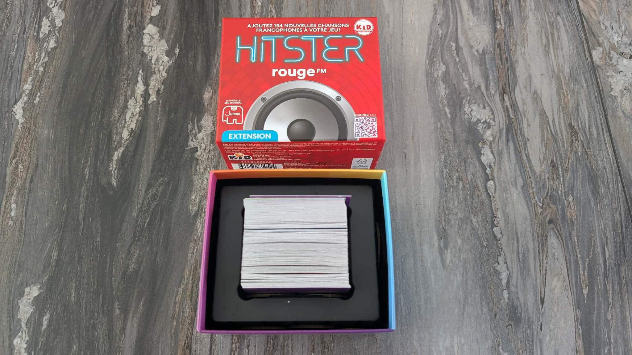 Voilà une petite surprise qui en a étonné plus d’un durant le temps des Fêtes 2025: une belle collaboration entre Hitster et la station de radio Rouge FM, qui nous a proposé une extension 100 % francophone contenant 154 nouvelles chansons. Celles-ci peuvent être ajoutées à l’édition 100 % franco ou simplement être jouées telles quelles, comme une édition standard (il faudra alors emprunter des jetons à une autre boîte au besoin). On y retrouve évidemment des pièces musicales diffusées régulièrement sur les ondes de Rouge FM, pour le plus grand plaisir des amateurs de radio.
