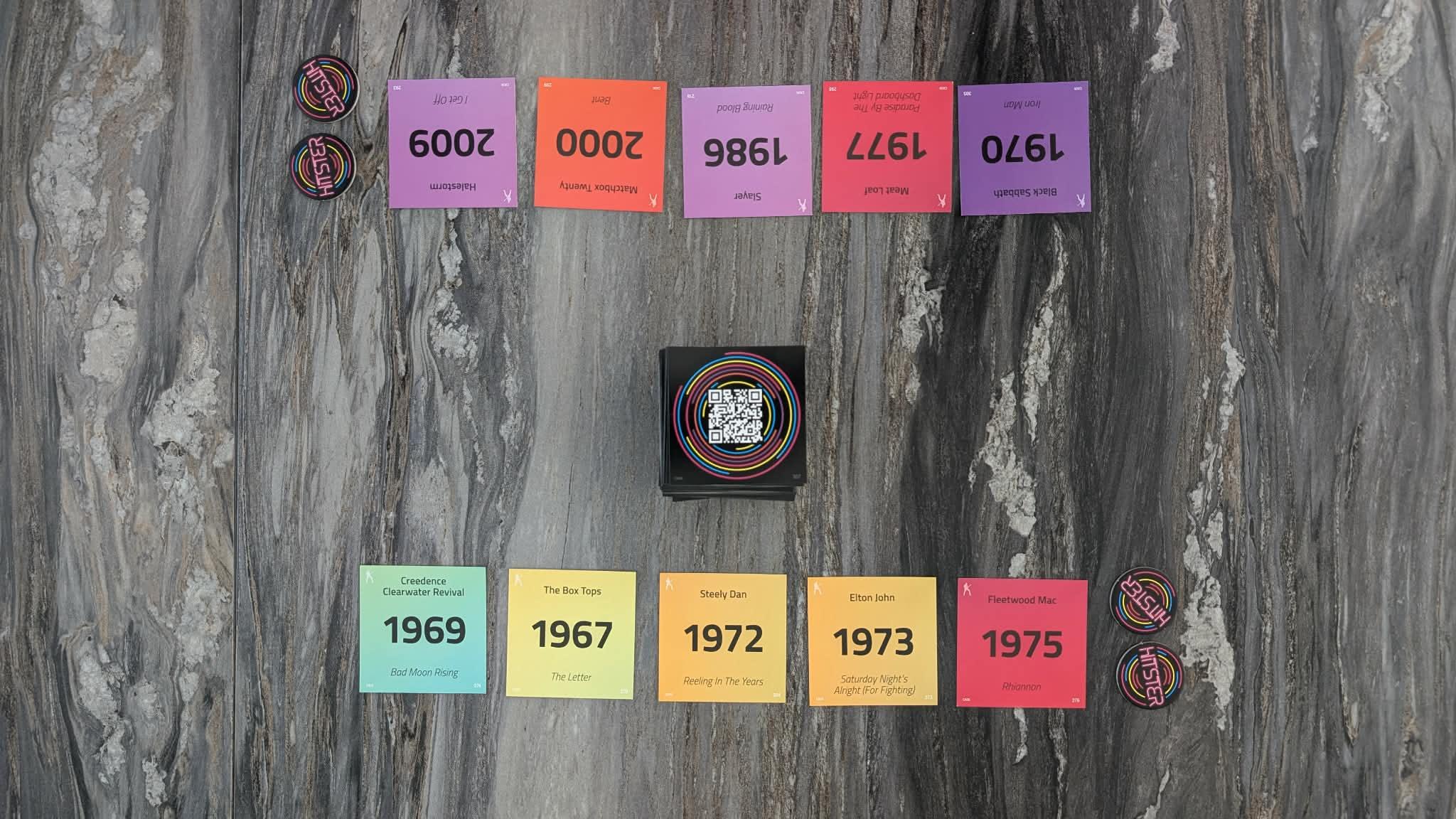 Pour jouer à Hitster, il faut s’assurer d’avoir un téléphone intelligent à portée de main avec l’application Spotify installée (notez qu’il n’est pas nécessaire d’avoir un compte Spotify Premium pour jouer: la version gratuite convient également). Lorsque tous les joueurs sont prêts à commencer, l’un d’eux prend le téléphone et numérise le code QR de la première carte située sur le dessus du paquet central. Une chanson se met alors immédiatement à jouer. Le joueur situé à la gauche du « DJ » tire cette carte face cachée et l’ajoute à sa ligne du temps, en essayant de la positionner correctement par rapport aux cartes précédemment posées.