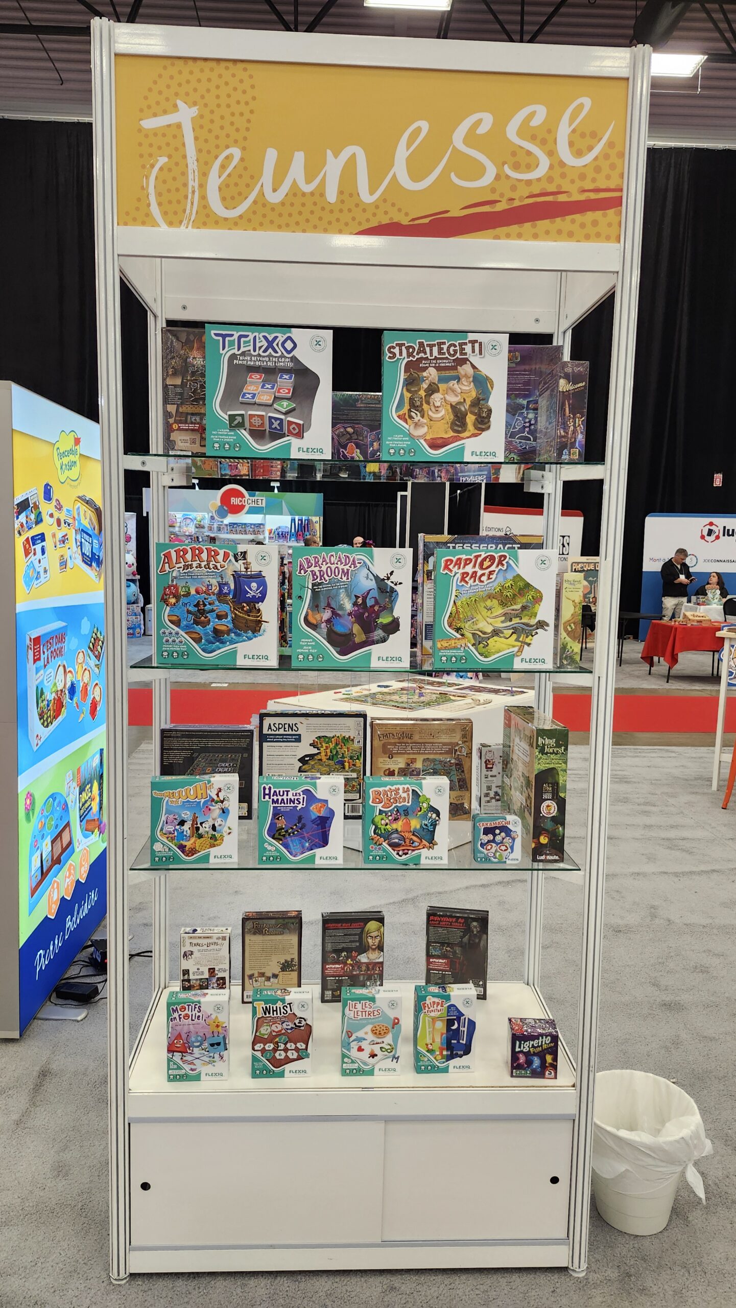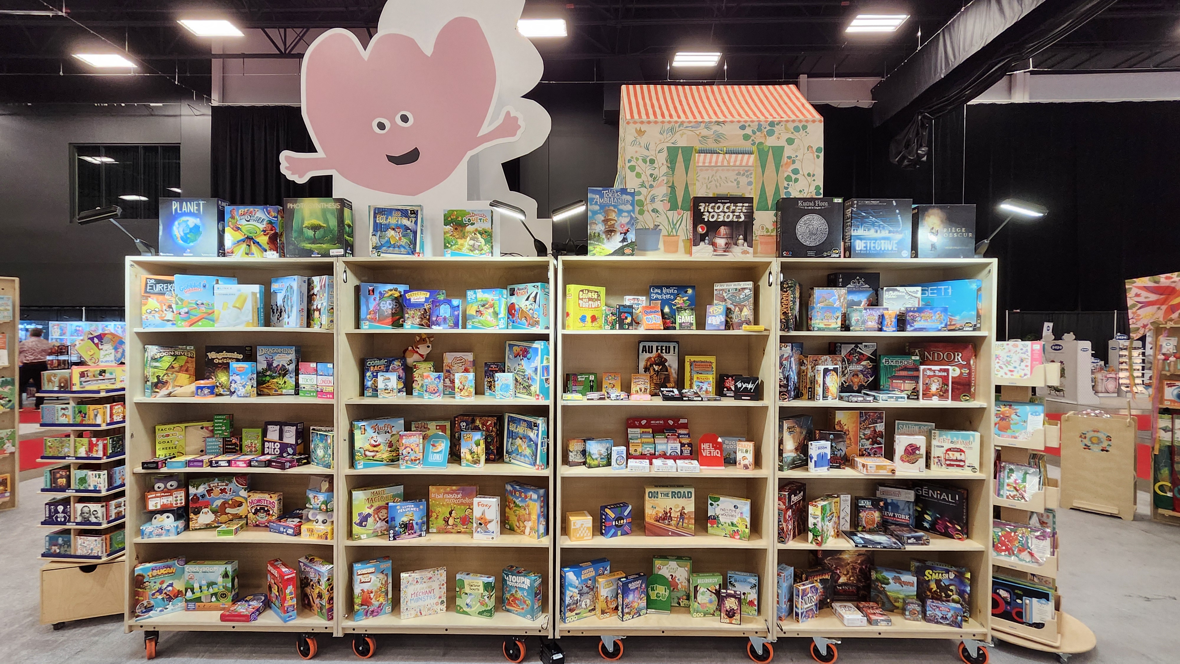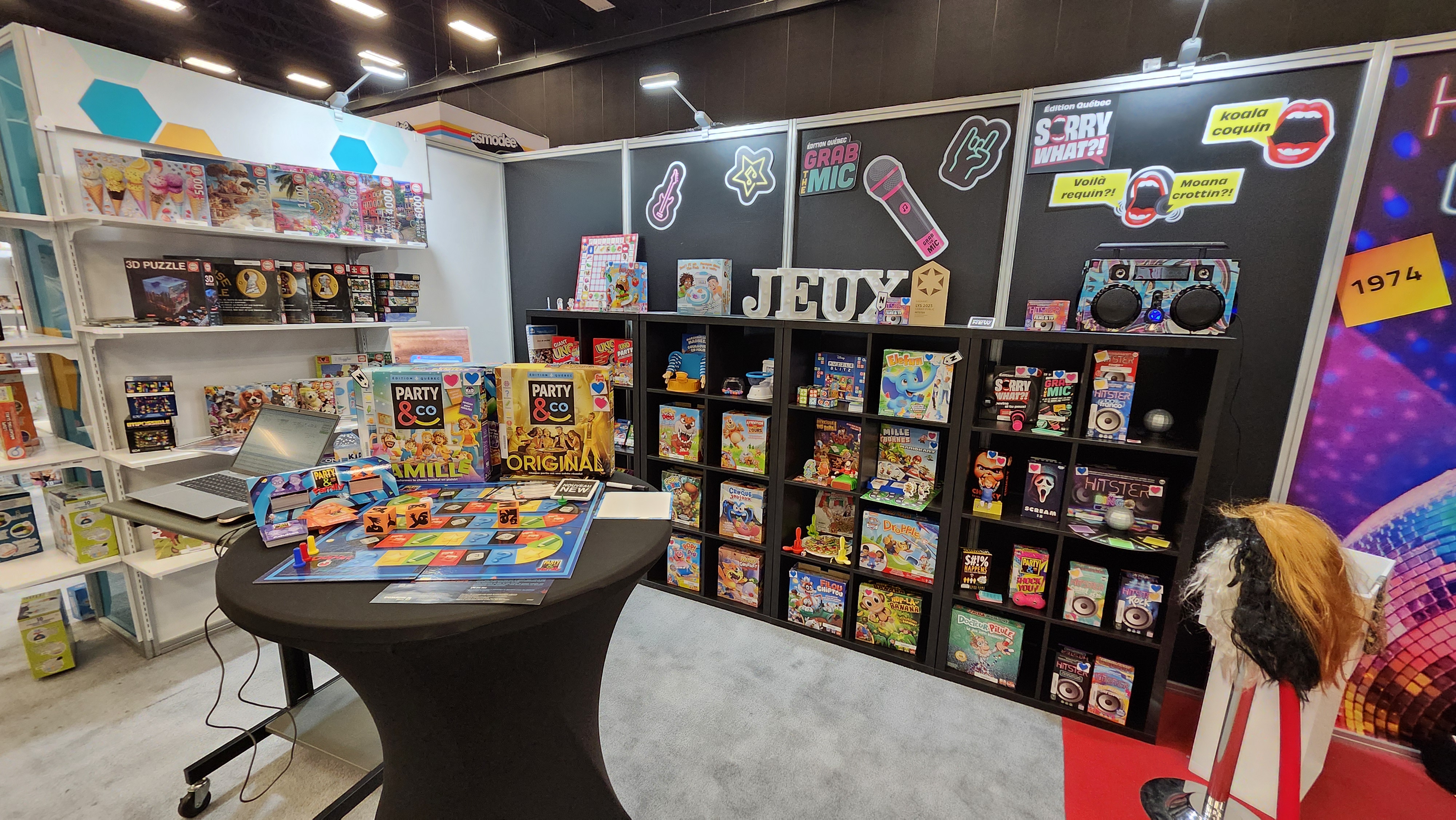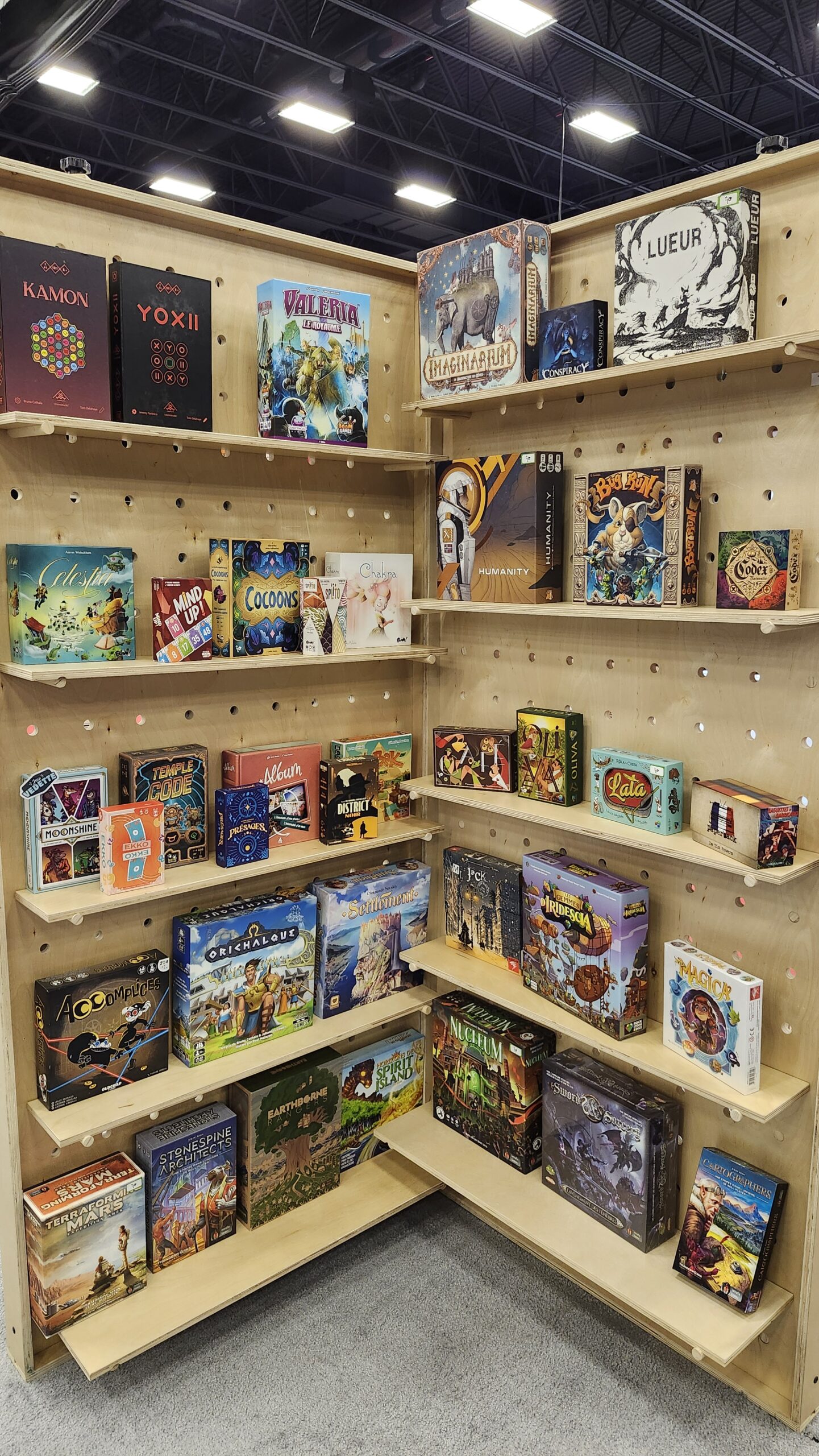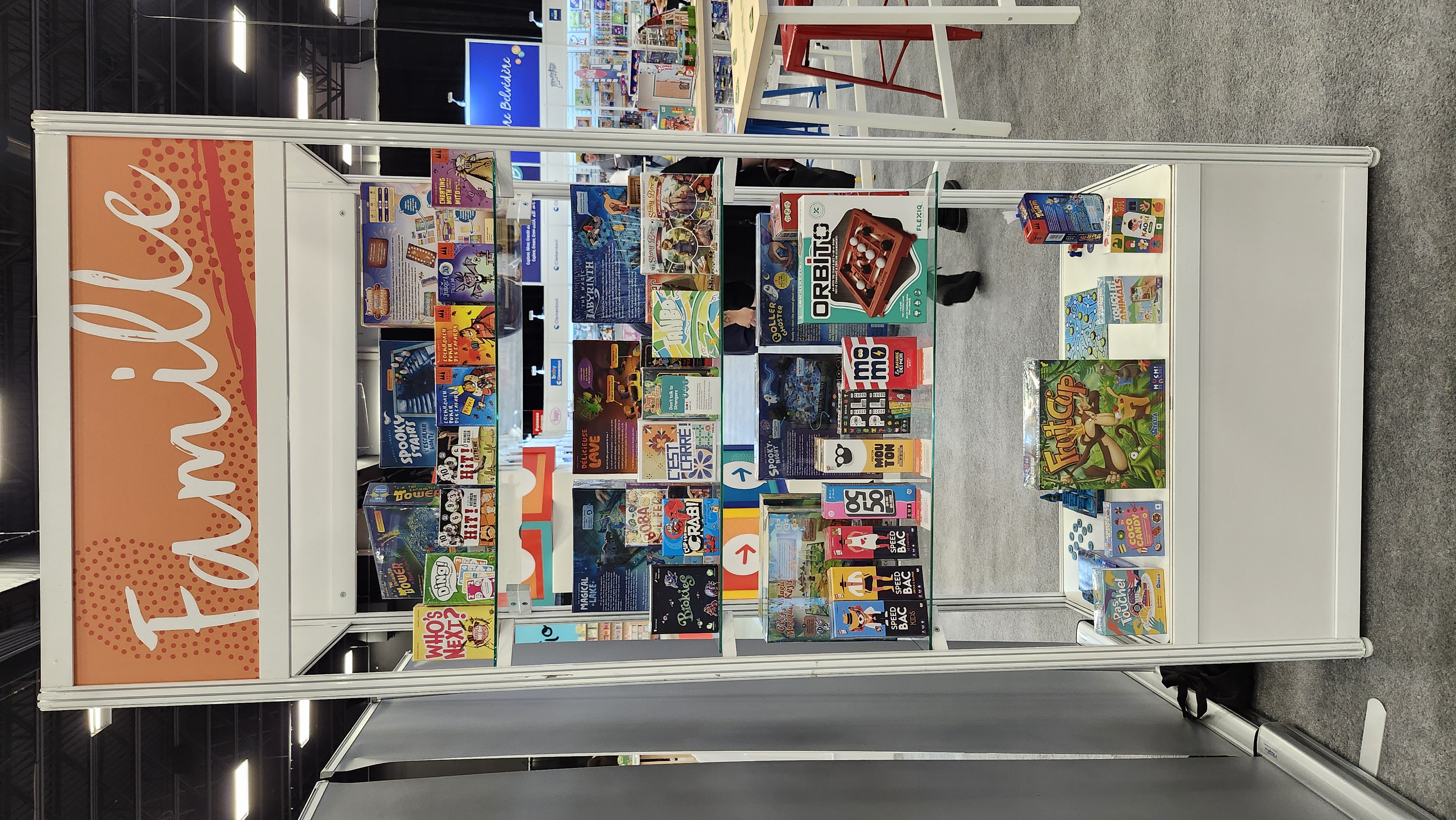 Randolph avait aussi une tonne de jeux délirants en démonstration. Dès notre arrivée à leur kiosque, nous avons été accueillis par Gilles, qui nous a montré toutes les nouveautés intéressantes et les succès de la dernière année. Nous avons pu voir de près Hues and Cues dont la version française sera bientôt disponible, et des jeux comme Dice Throne, Coin Up! (qui sera en vente dès juillet 2026), Quoridor et Rebirth. Nous devons avouer que plusieurs de ces titres nous ont fait saliver!