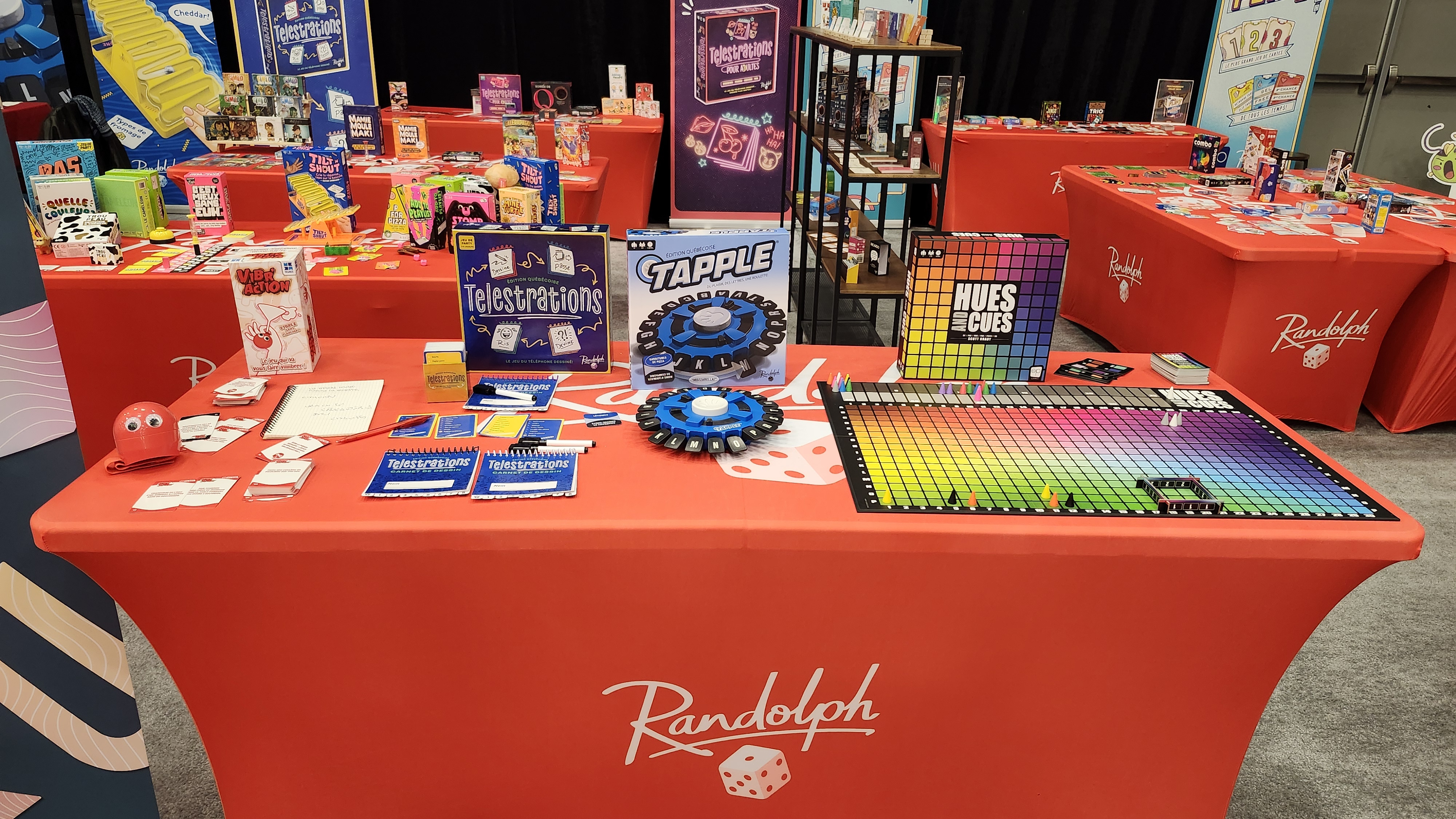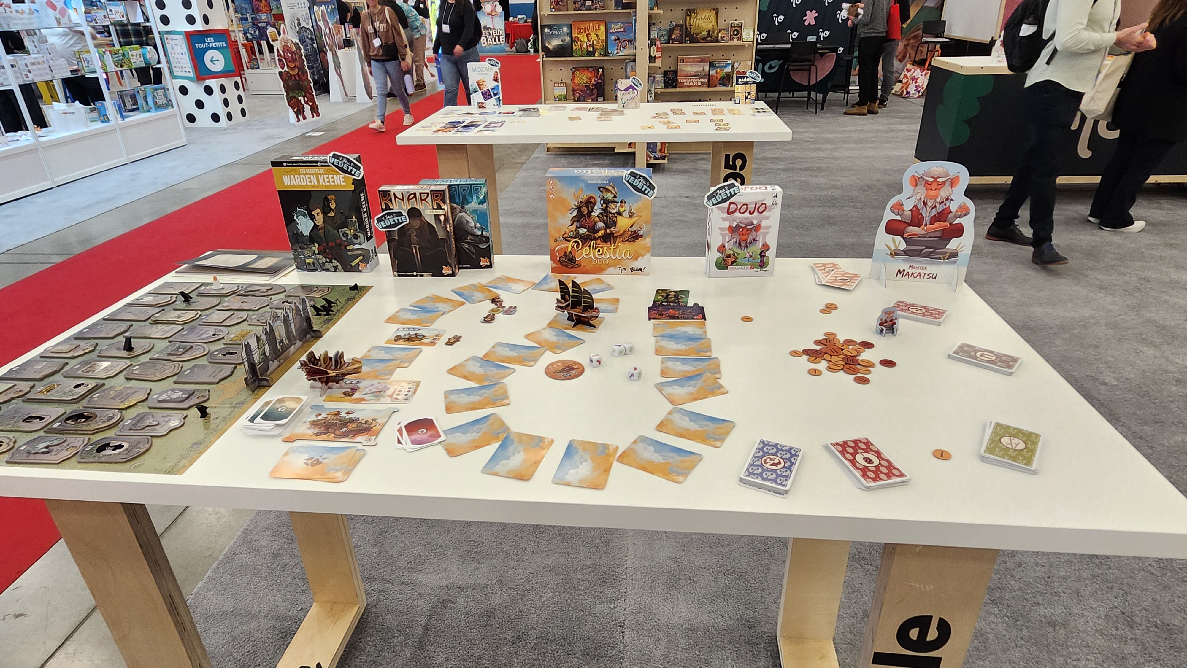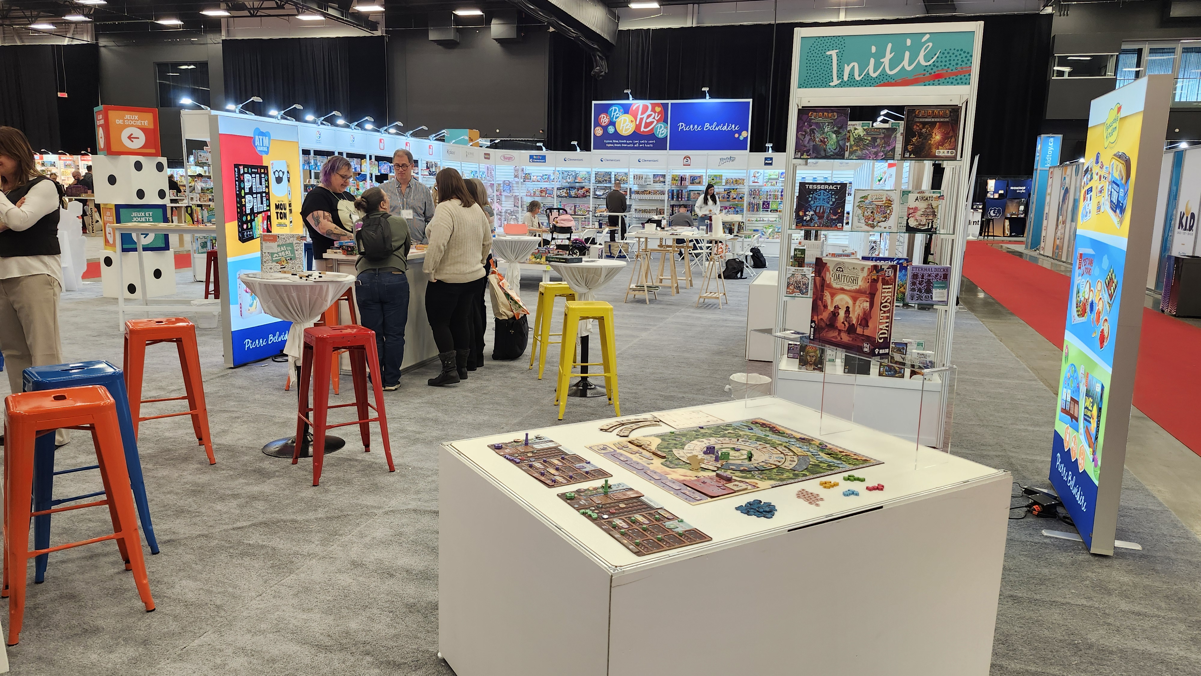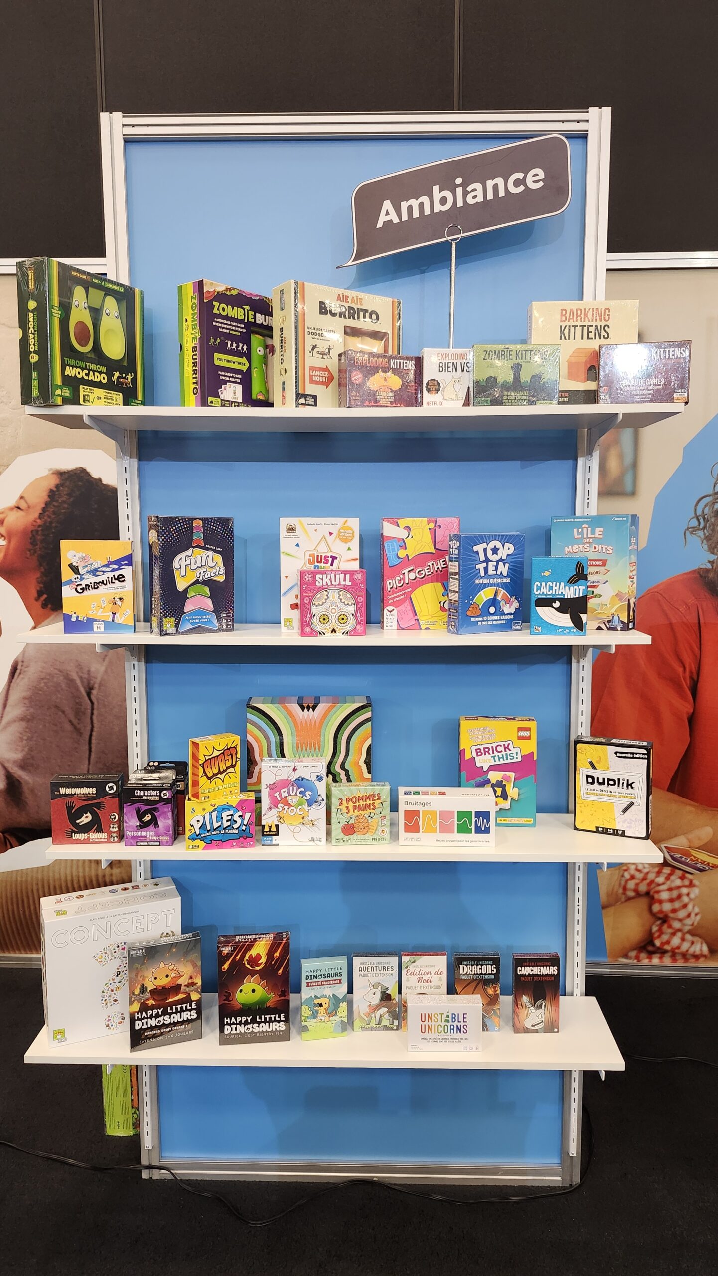 Randolph avait aussi une tonne de jeux délirants en démonstration. Dès notre arrivée à leur kiosque, nous avons été accueillis par Gilles, qui nous a montré toutes les nouveautés intéressantes et les succès de la dernière année. Nous avons pu voir de près Hues and Cues dont la version française sera bientôt disponible, et des jeux comme Dice Throne, Coin Up! (qui sera en vente dès juillet 2026), Quoridor et Rebirth. Nous devons avouer que plusieurs de ces titres nous ont fait saliver!