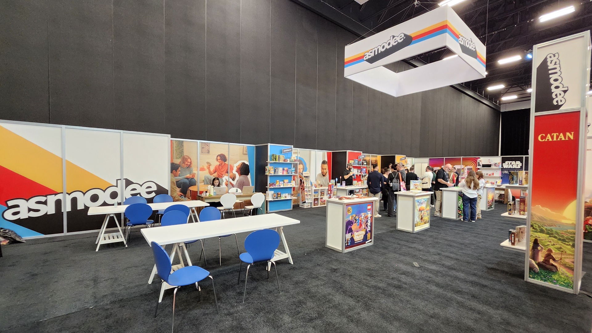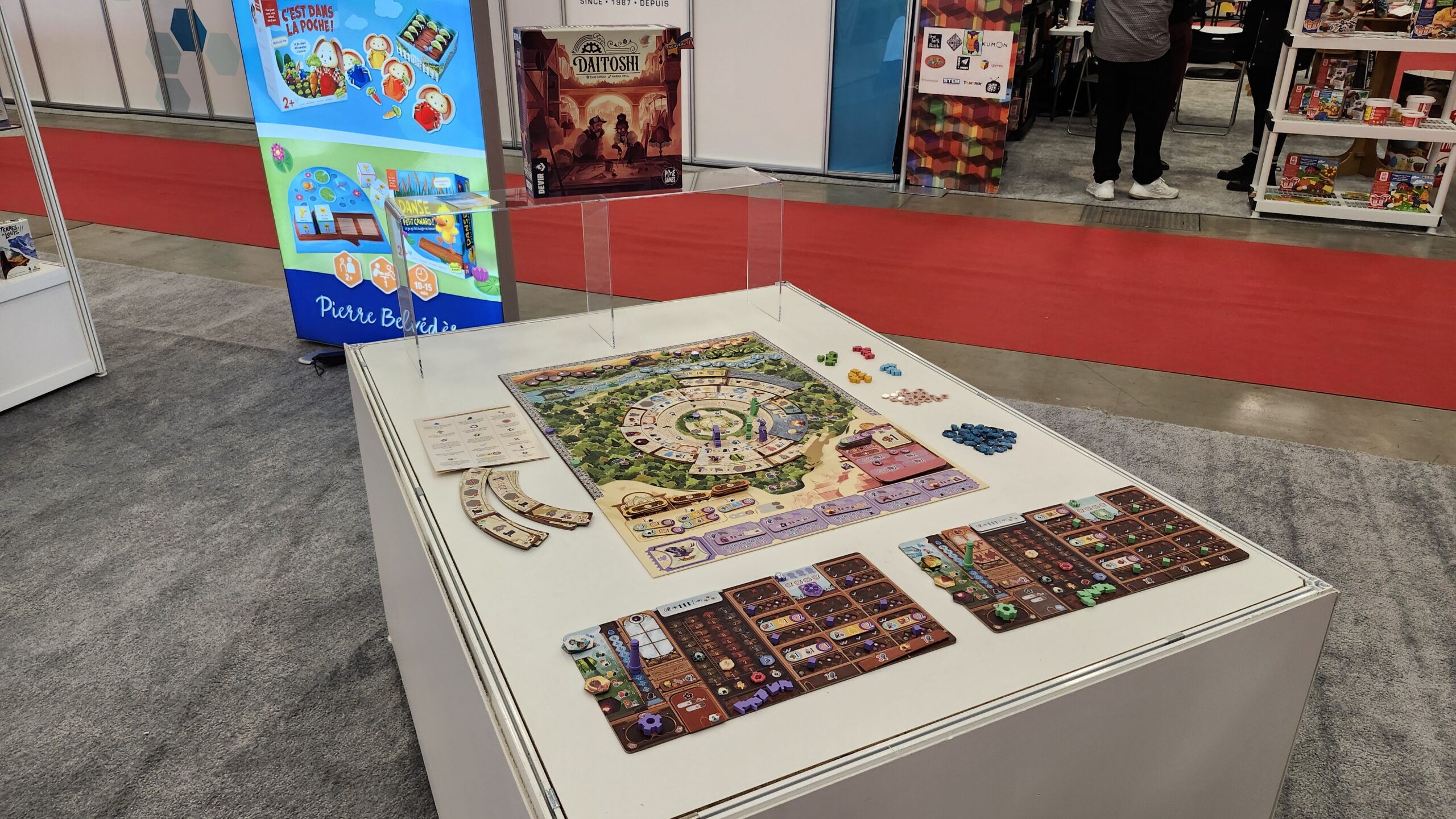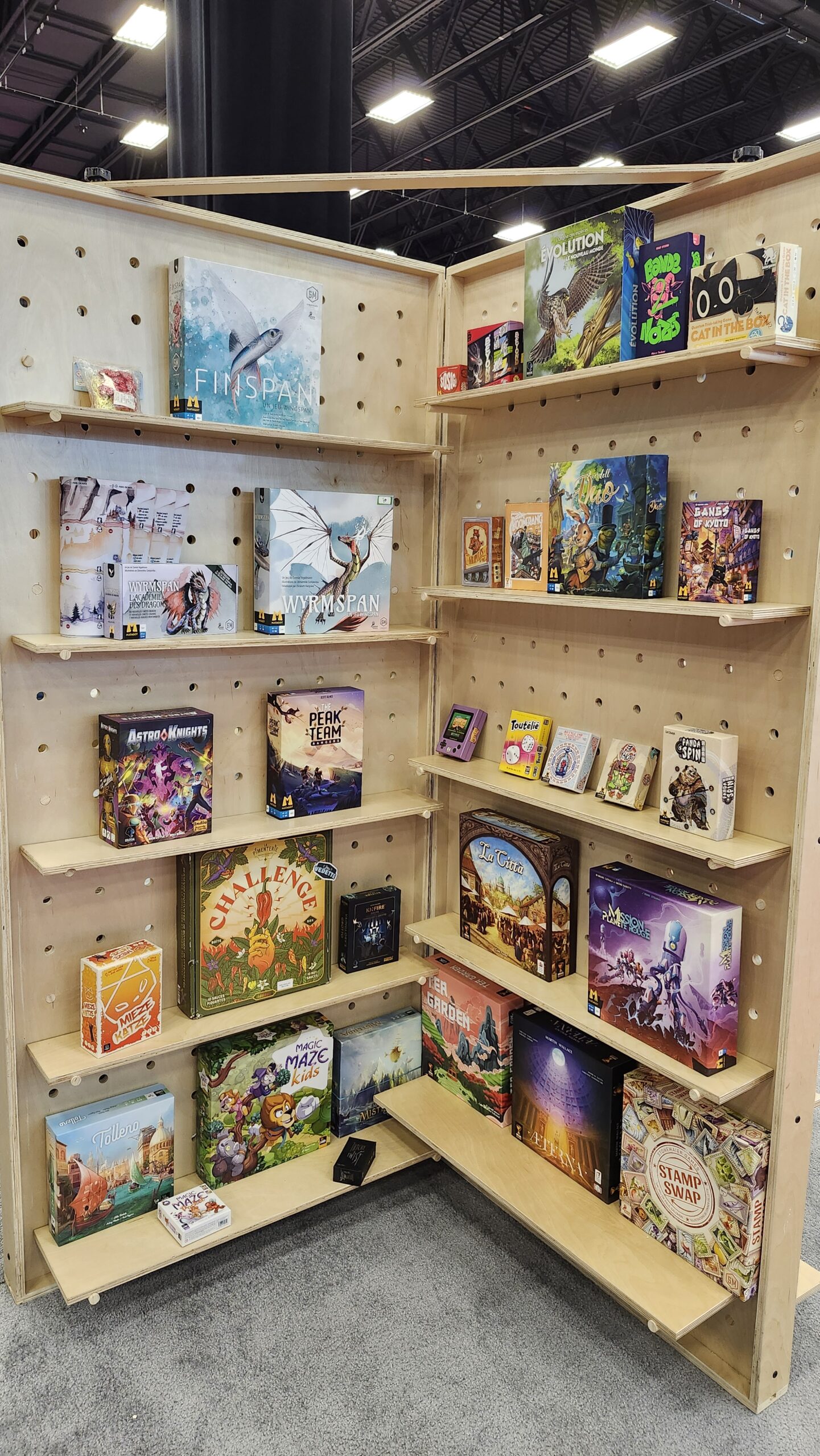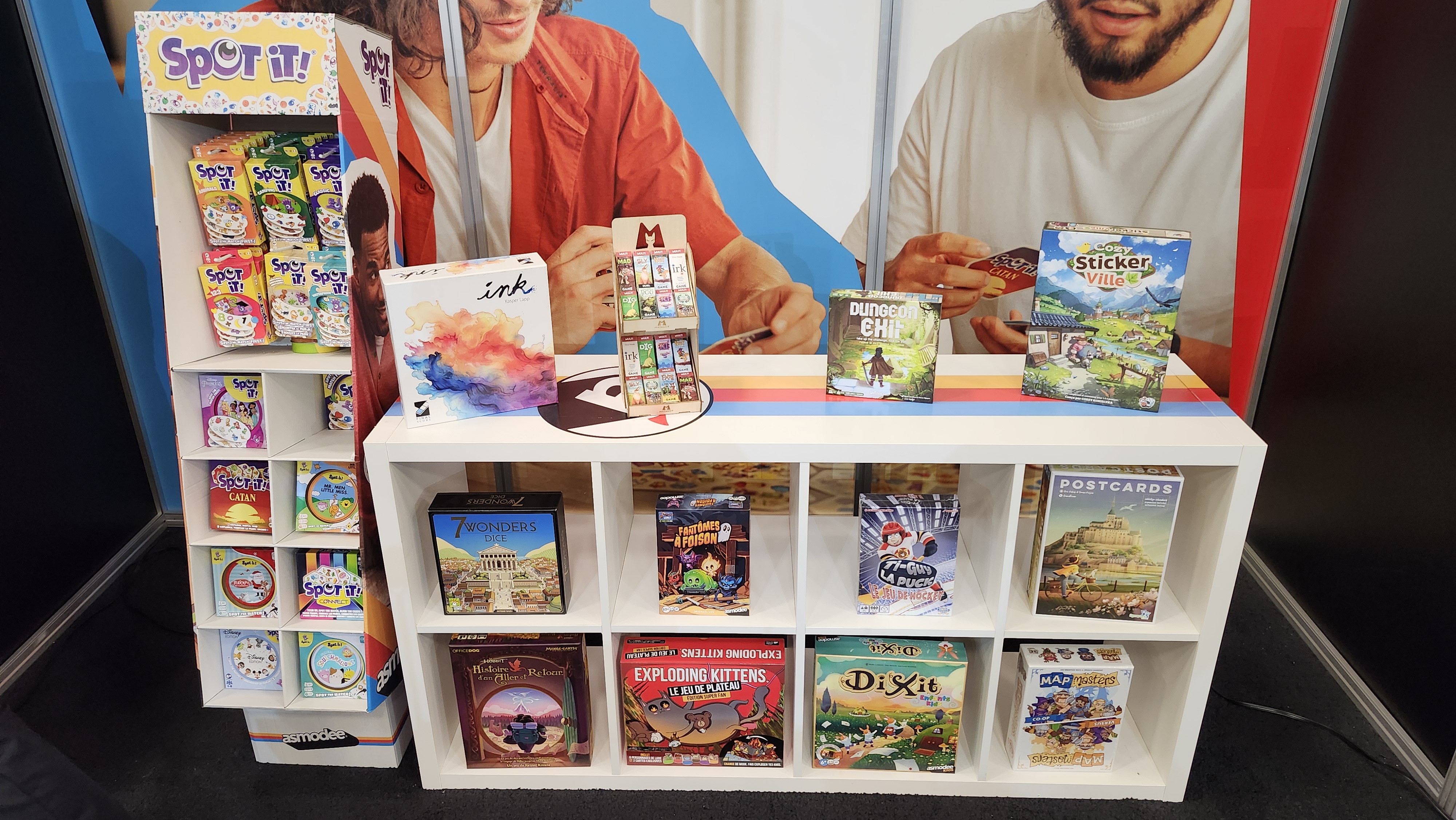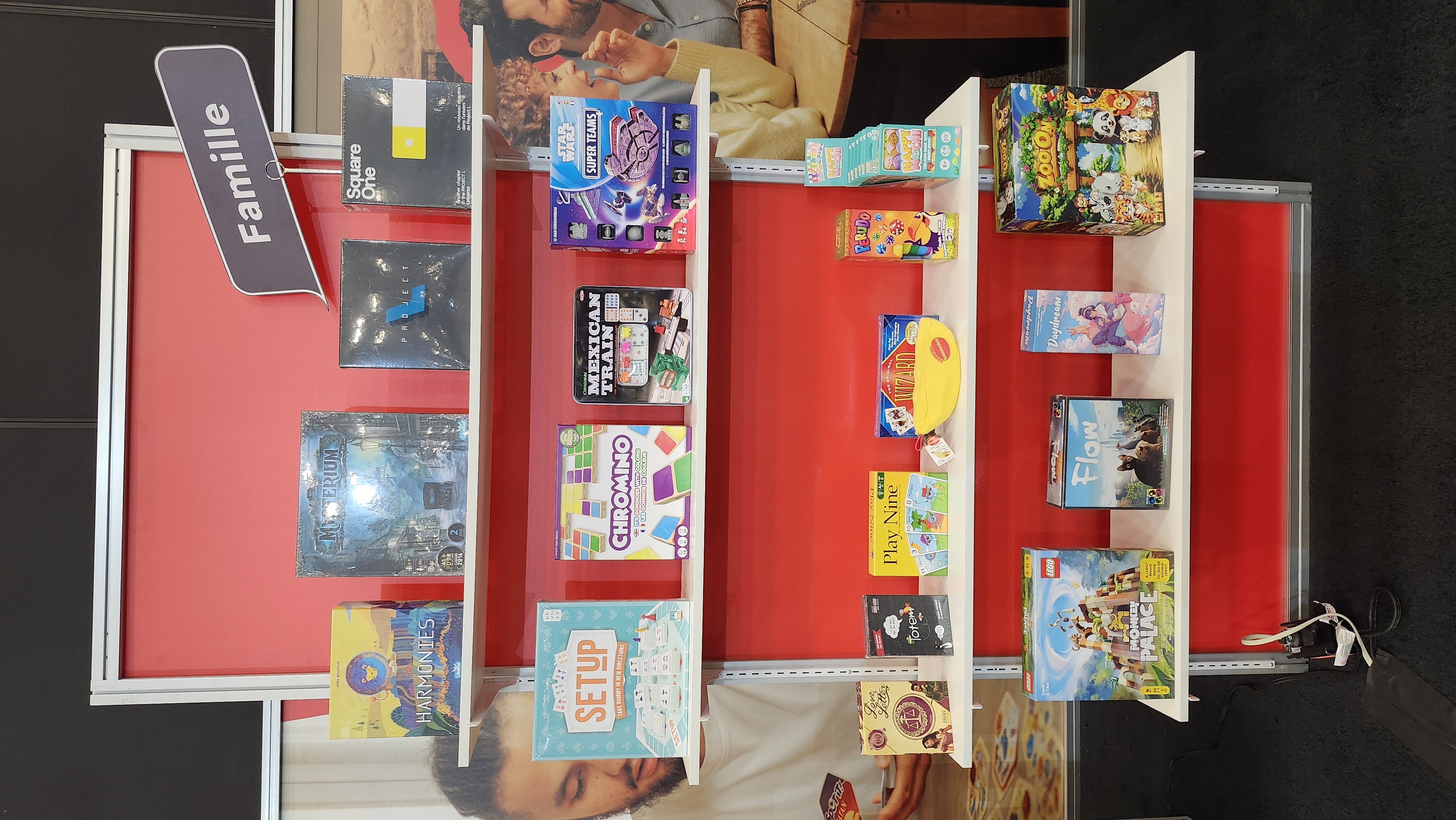 Randolph avait aussi une tonne de jeux délirants en démonstration. Dès notre arrivée à leur kiosque, nous avons été accueillis par Gilles, qui nous a montré toutes les nouveautés intéressantes et les succès de la dernière année. Nous avons pu voir de près Hues and Cues dont la version française sera bientôt disponible, et des jeux comme Dice Throne, Coin Up! (qui sera en vente dès juillet 2026), Quoridor et Rebirth. Nous devons avouer que plusieurs de ces titres nous ont fait saliver!