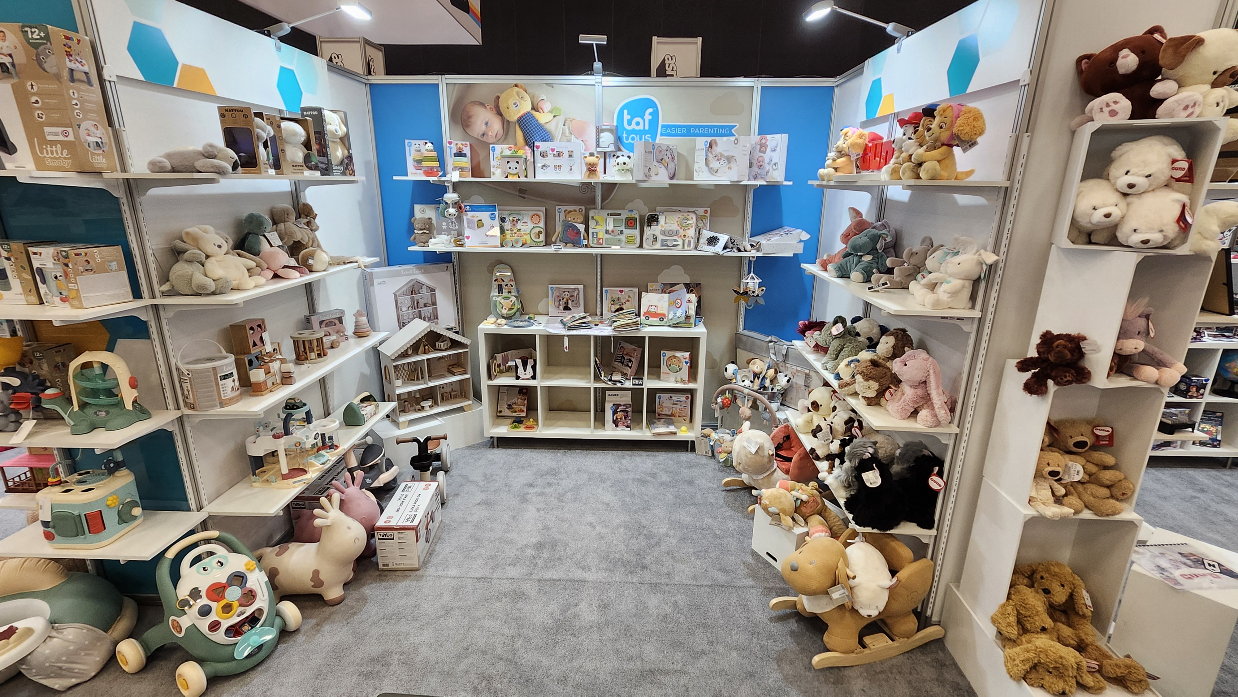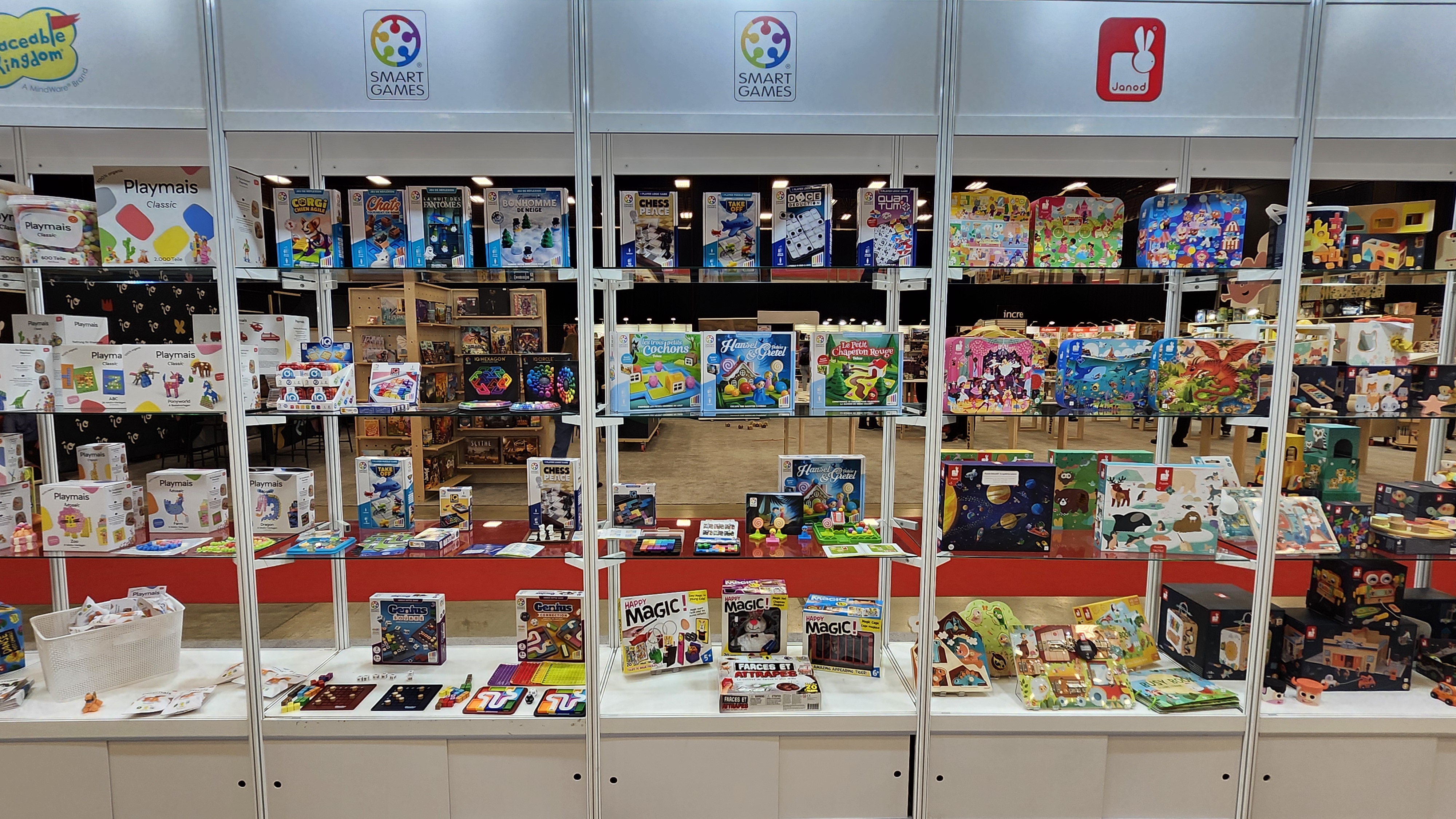Au kiosque de K.I.D. Toy, nous avons été chaleureusement été accueillis par Jinny avec qui nous nous sommes empressés de parler de la gamme Hitster, en particulier Hitster Rock, dont nous avons fait la critique récemment. Elle en a profité pour nous faire essayer Match my Beat, le tout nouveau jeu de Jumbo dont la version française sortira en septembre 2026, qui s’inspire énormément de Hitster. Il s’agit d’une version qui demande moins de connaissances générales en musique, mais qui est tout aussi amusante. Même moi, qui ne suis pas un grand fan de jeu du genre, j’ai trouvé notre essai amusant et je me vois facilement sortir un jeu comme celui-ci à peu près avec n’importe quel groupe dans n’importe quelle circonstance. Nous avons aussi pu admirer le choix de jouets incroyable que K.I.D. Toy propose, ce qui nous a évidemment créé des besoins.