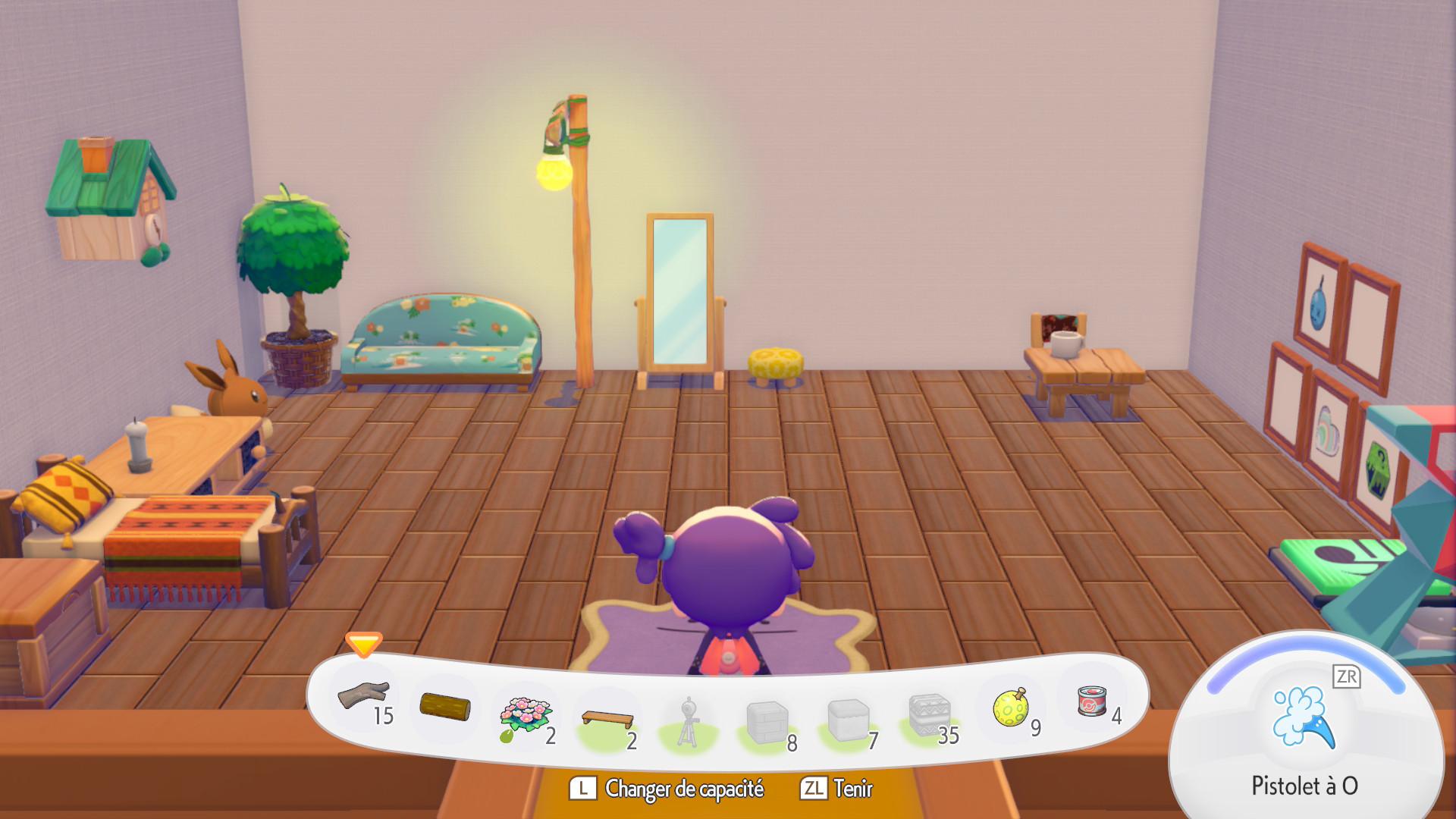 Bien sûr, le jeu offre plus que la simple possibilité de créer des habitats. Vous pourrez vite remarquer que tout l’environnement peut être terraformé. En fait, vous devrez avancer légèrement dans le jeu, car il y a quelques matériaux trop résistants pour que vous puissiez les détruire immédiatement. Mais en peu de temps, vous pourrez aplatir les montagnes et modeler votre environnement comme vous le souhaitez. Vous pourrez créer un monde à votre image en peu de temps! Les décorations, les bâtiments, les maisons, les sources de lumière, les arbres et les fleurs pourront être placés comme vous le voulez. Si nous voulons le comparer à Animal Crossing, la construction dans Pokopia et le côté créatif sont mis de l’avant plus rapidement. On peut commencer à construire dès le début, tandis que, dans Animal Crossing, c’est assez long avant de pouvoir complètement remodeler votre île.
