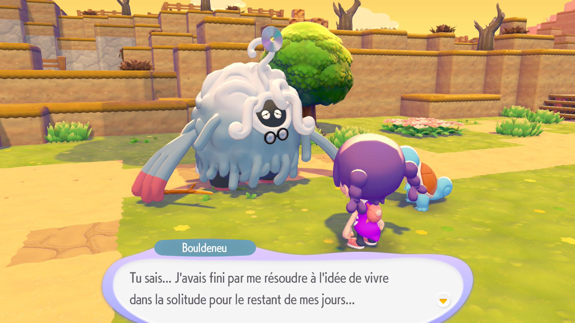 Comme dans tout bon jeu Pokémon, vous commencez votre expédition en choisissant votre apparence pour votre voyage. Cependant, vous n’êtes pas une personne ordinaire, mais plutôt un Metamorph qui prend la forme d’un dresseur. Professeur Bouldeneu, un Pokémon comme vous, vous accueille après votre réveil dans la grotte où il vit en ermite. Il est surpris de vous voir, car il n’a pas vu de Pokémon ni d’humains depuis très longtemps! En lui parlant, vous entendez un objet sonner au loin. En vous approchant et en fouillant dans la brouette dans laquelle Bouldeneu entreposait des objets qu’il amassait depuis plusieurs années, vous trouvez un Pokédex poussiéreux qu’il croyait brisé, mais, comme par miracle, il fonctionne toujours! Le professeur vous apprend que vous êtes les seuls Pokémon de ses terres désolées. Tous ceux qui y vivaient autrefois ont disparu. En sortant de la grotte pour vous montrer les dégâts et cette tragédie, vous voyez au loin un Pokémon au sol. Malheureusement, il est en piteux état et il semble vouloir vous demander quelque chose. En approchant de lui, il vous demande de l’eau. Carapuce a besoin de vous! Il vous apprend « Pistolet à O » pour l’arroser. À partir de maintenant, vous pouvez utiliser ce pouvoir pour reverdir les alentours. Des herbes, des fleurs et autres poussent au contact de l’eau! Je pense que l’idée d’un Pokémon capable d’imiter et d’acquérir les capacités des autres Pokémon comme protagoniste est vraiment intéressante!