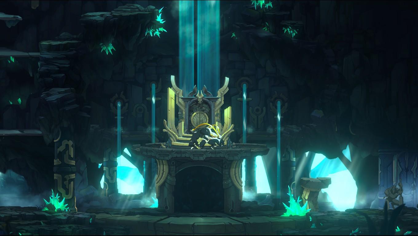 Cette promesse de richesse se ressent immédiatement dans les décors. Les zones aperçues jusqu’ici ont presque toutes ce petit quelque chose qui donne envie d’aller voir plus loin: une forêt baignée de lumière, une ville vallonnée pleine de charme, des ruines plus inquiétantes, des espaces souterrains, des cavernes cristallines, des arbres monumentaux, des structures anciennes qui suggèrent une histoire plus vieille que celle qu’on nous raconte d’abord. Le jeu comprend qu’un bon Metroidvania ne repose pas seulement sur le plaisir de se déplacer, mais aussi sur l’envie d’explorer parce que chaque recoin semble porteur d’un mystère, d’un détour, d’un détail ou d’une récompense.