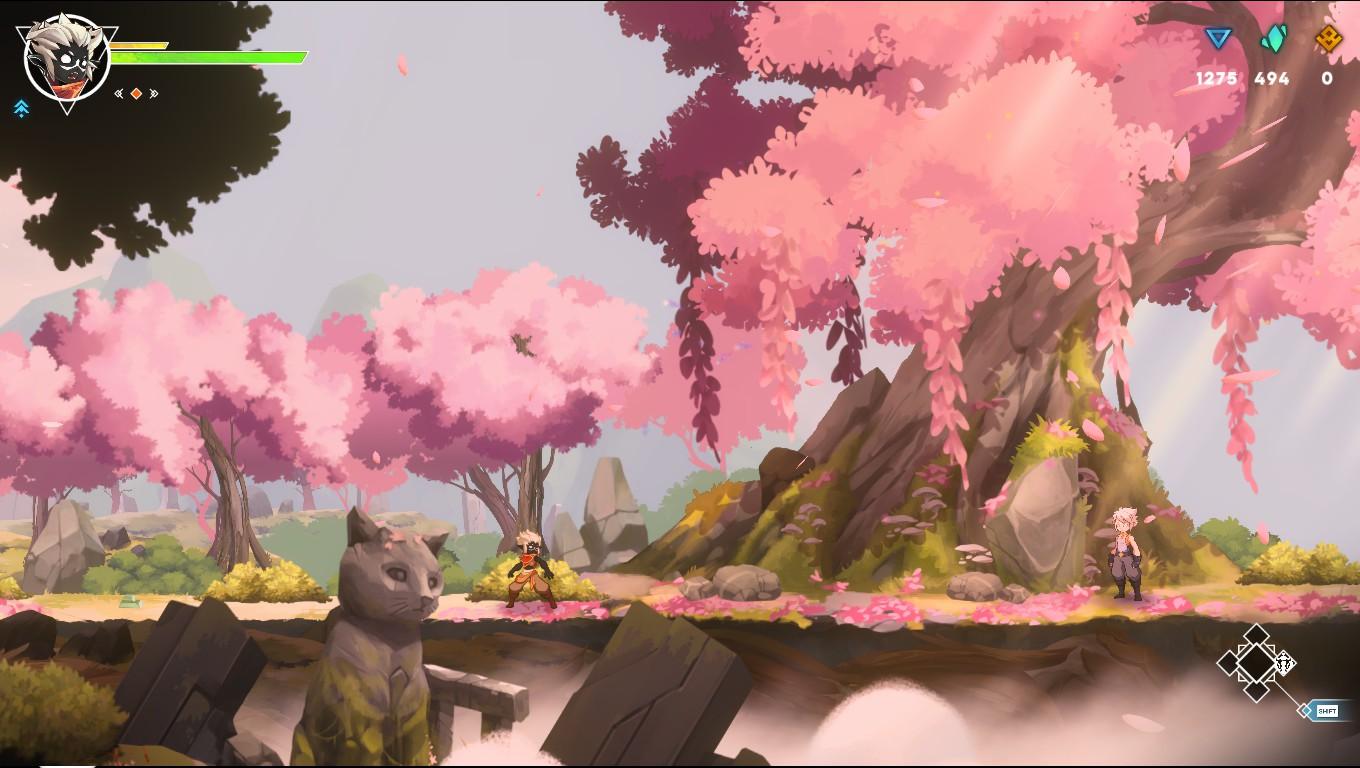 Le premier argument de Fallen Tear: The Ascension, c’est son apparence. Et sur ce point, difficile de tourner autour du pot: le jeu est splendide. Son univers repose sur une direction artistique 2D dessinée à la main, avec des personnages animés dans un style très expressif et des environnements qui évoquent tour à tour le livre illustré, le conte fantastique et l’animation japonaise. Le monde de Raoah se présente comme une terre magique rongée par une forme de corruption dans laquelle, Hira, notre jeune protagoniste au passé trouble, devient le pivot d’un déséquilibre plus grand que lui. Le jeu propose à ce stade un monde de 26 biomes interactifs, plus de 150 ennemis différents, ainsi qu’un ensemble de systèmes liés aux « Fated Bonds », un système de lien d’amitié entre les personnages rencontrés et notre héros aux compétences et aux capacités d’Ascension.