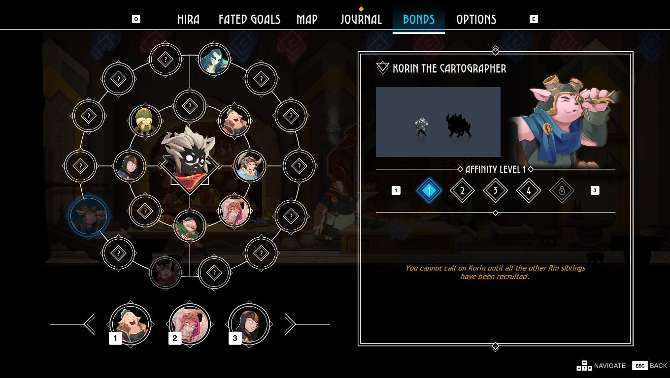 Ces « Bonds » se comportent comme des compétences assignables, des invocations, des soutiens temporaires, des bonus actifs ou passifs. L’idée de mêler des logiques de party-based RPG à la structure du Metroidvania est franchement séduisante. On sent l’influence du JRPG dans la manière dont les relations, les aptitudes et la progression s’entrecroisent. Le problème, c’est que cette richesse s’accompagne déjà d’un danger clair: la surcharge. Les ressources ne sont pas clairement comptabilisées, la carte, bien que lisible, ne permet pas encore de mettre des points d’intérêt soi-même (bien que le jeu parle de cette fonction) et n’affiche pas les alliés qui se sont joints à nous, ce qui est exigeant à tracker soi-même.